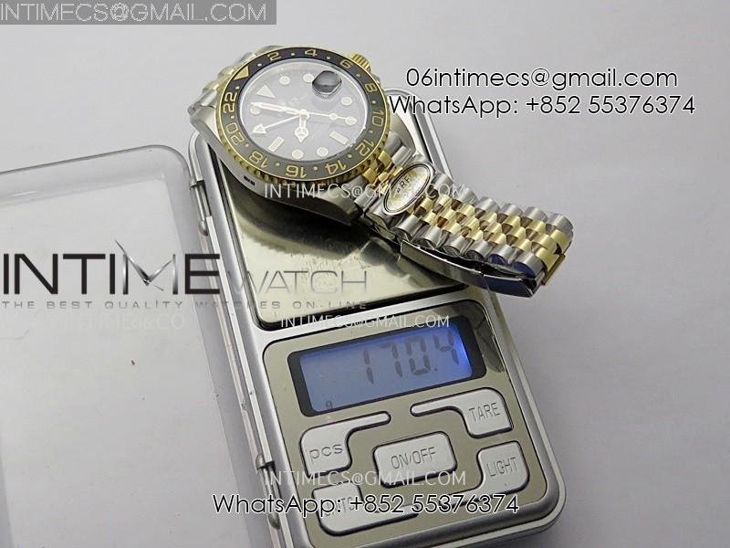 Bezel Bi-directional rotating Gray/Black ceramic bezel with Solid 904L stainless steel with 18k yellow gold plated (Cu-W metal to increase watch weight to match the genuine gold watch weight, almost same weight as genuine watch)