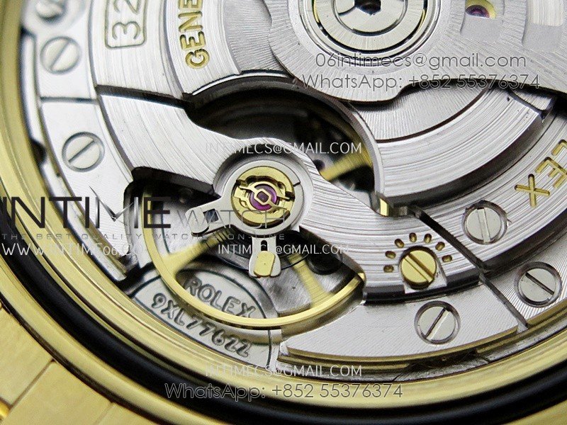 Movement Asian Super Clone Shanghai 3285 Automatic Movement at 28800 vph, Correct Handstack, self-winding, independent adjustable hour hand to set the date, same adjusting as genuine