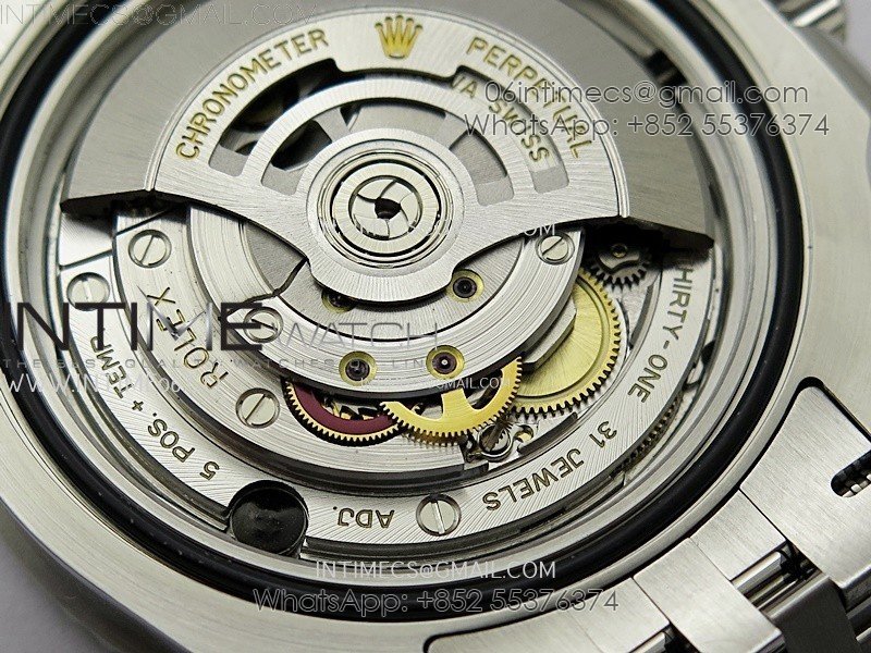Movement Asian Super Clone VR 3285 Automatic Movement at 28800 vph, Correct Handstack, self-winding, independent adjustable hour hand to set the date, same adjusting as genuine