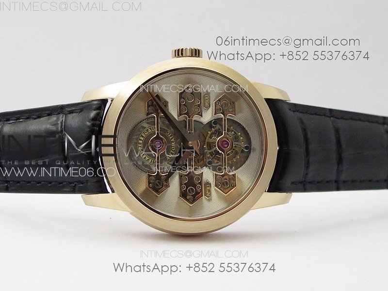 GP Bridges 41mm Tourbillon RG YSF Best Edition White Dial on Black Leather Strap