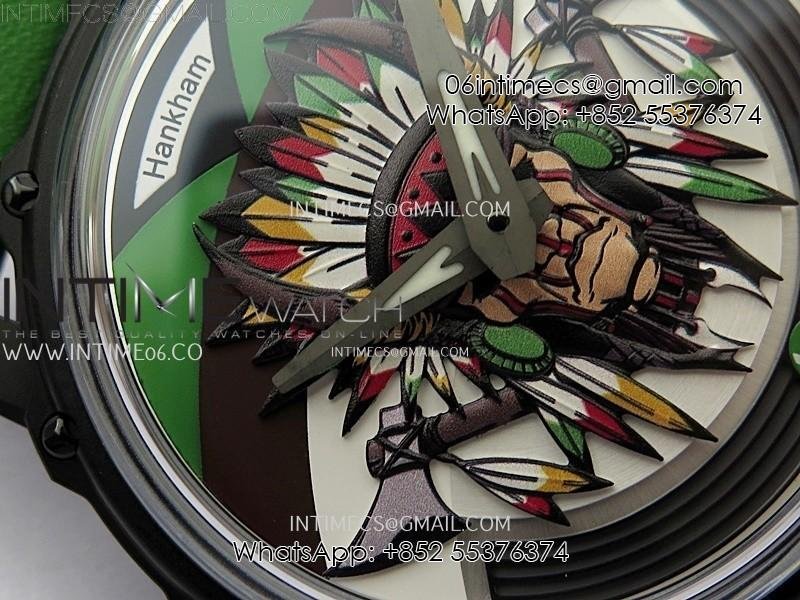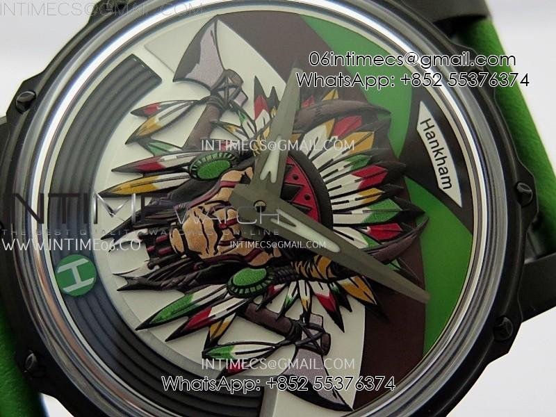 Hankham Indians PVD on Green Leather Strap MIYOTA 8215