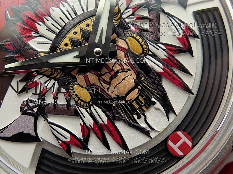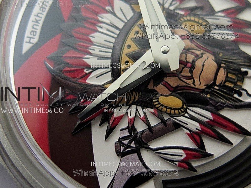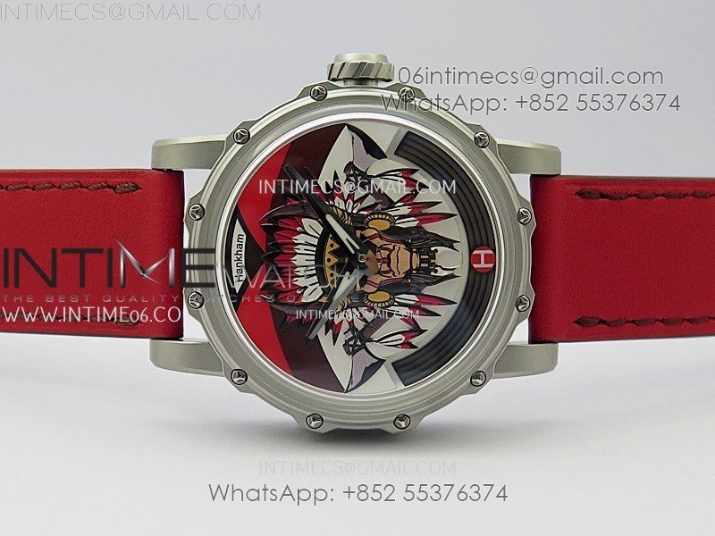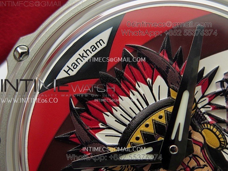Hankham Indians SS on Red Leather Strap MIYOTA 8215