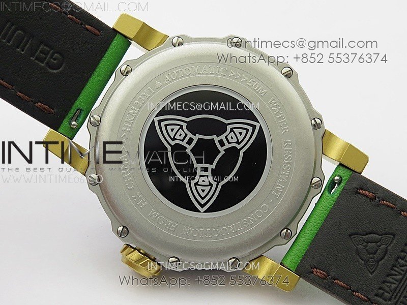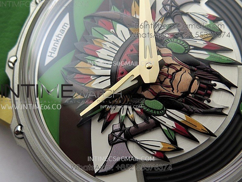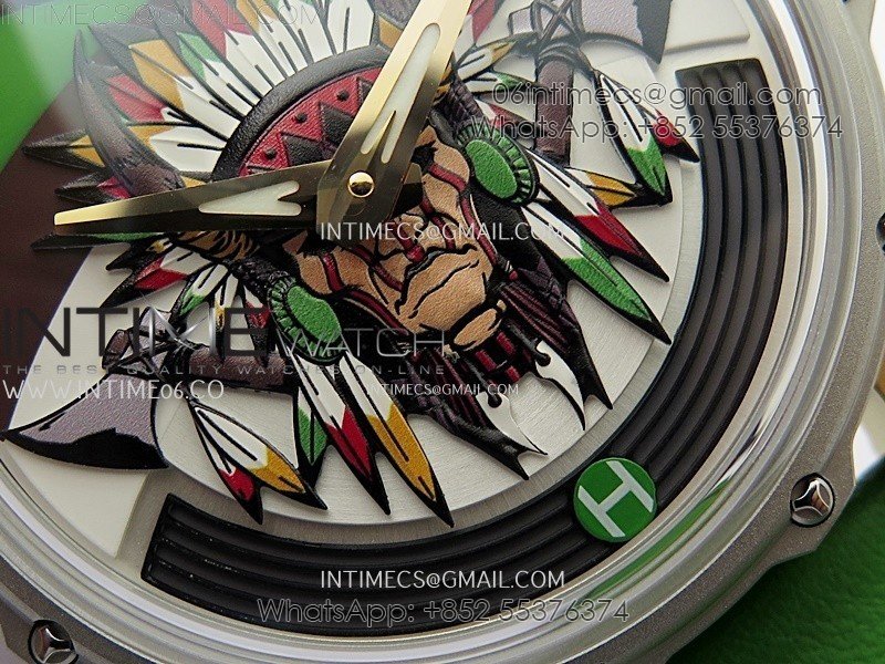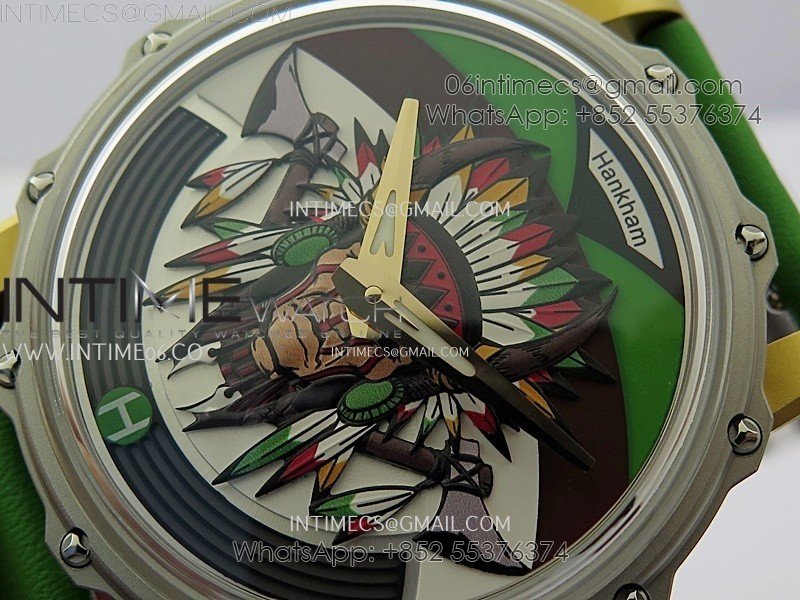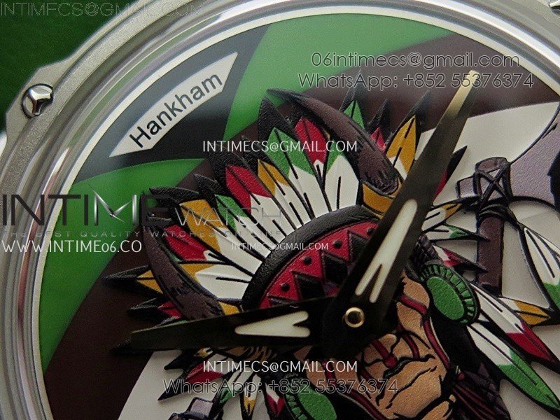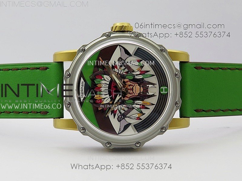 Hankham Indians Two Tone on Green Leather Strap MIYOTA 8215