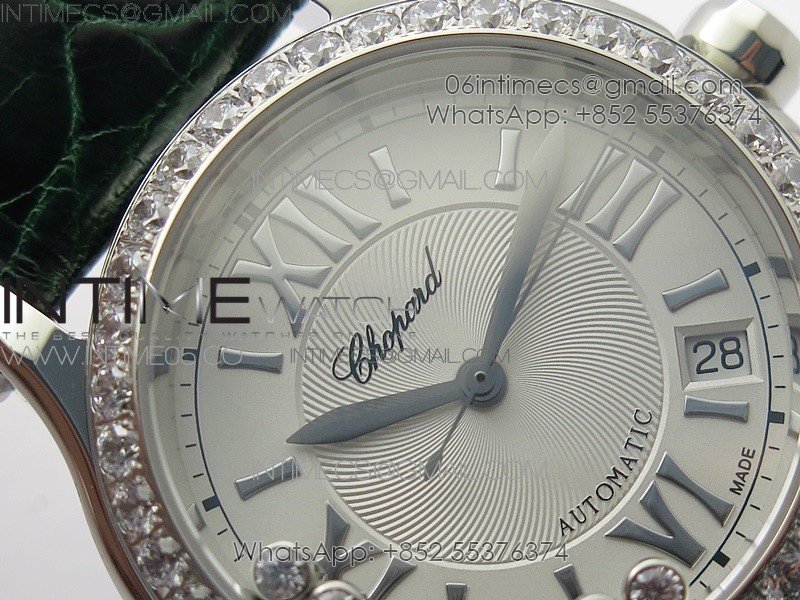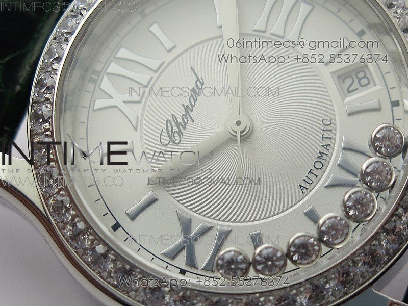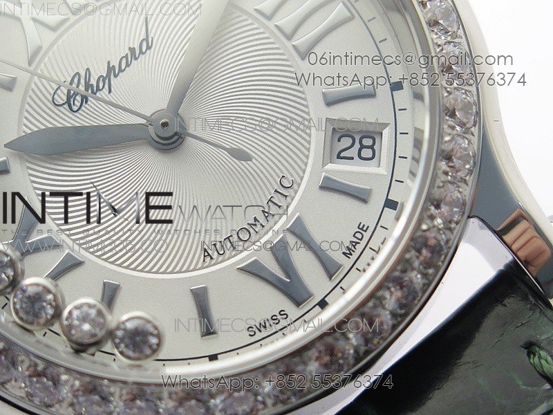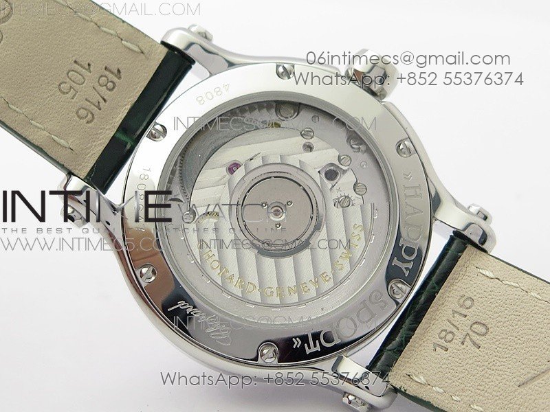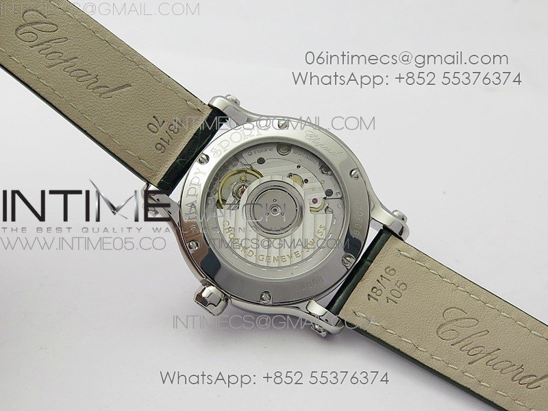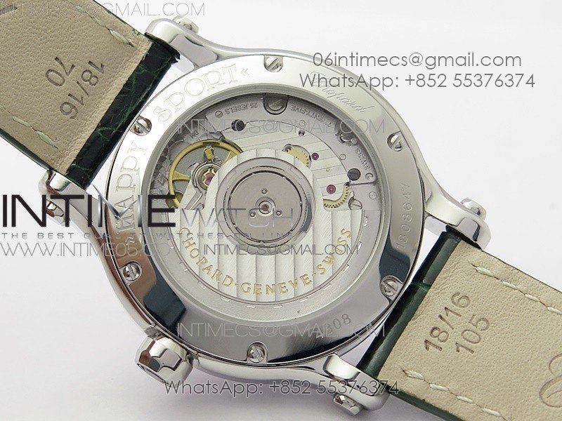 HAPPY SPORT AUTOMATIC SS 36MM CRYSTAL YYF 1:1 BEST EDITION WHITE DIAL ON GREEN LEATHER STRAP A2892