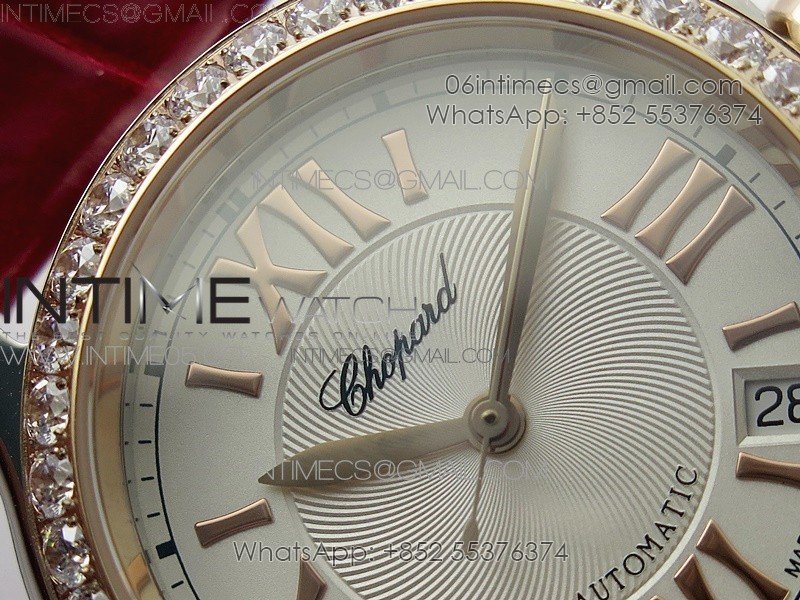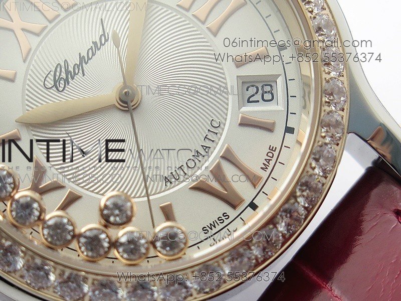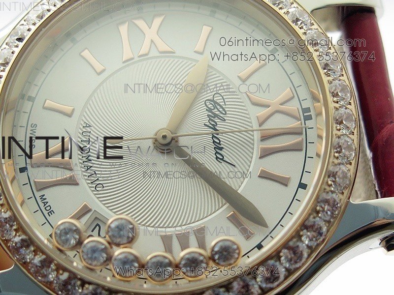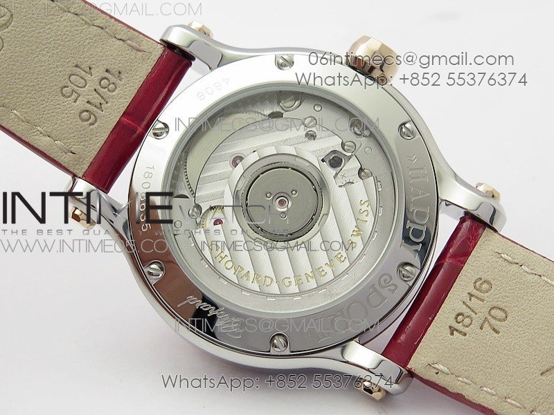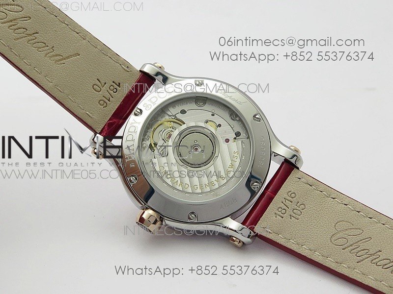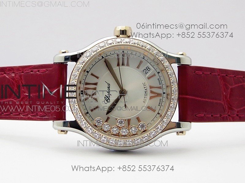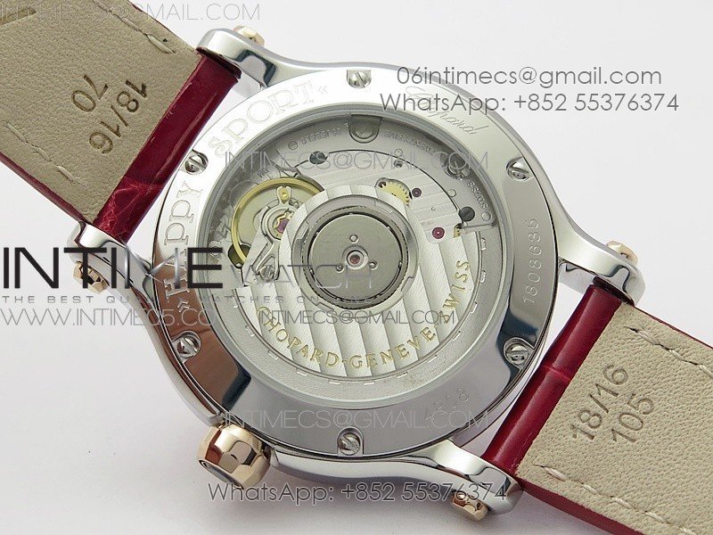 HAPPY SPORT AUTOMATIC SS/RG 36MM CRYSTAL YYF 1:1 BEST EDITION WHITE DIAL ON RED LEATHER STRAP A2892