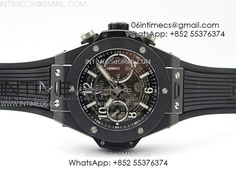 Hublot Big Bang Unico 42mm Real Black Ceramic BBF 1:1 Best Edition Black Skeleton Dial on Black Rubber Strap A1280