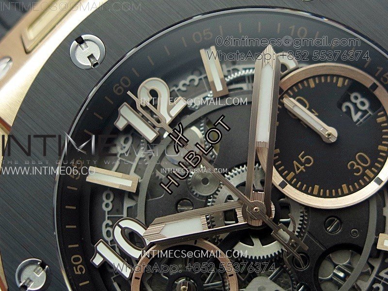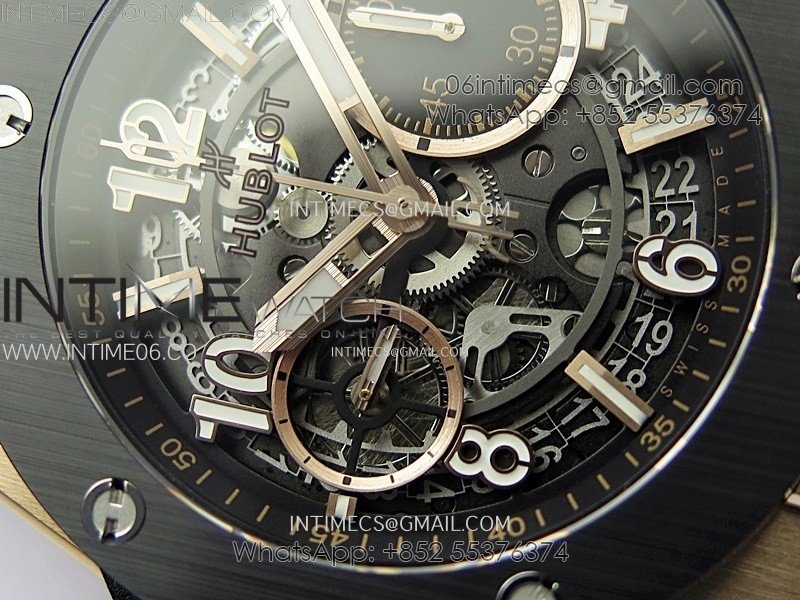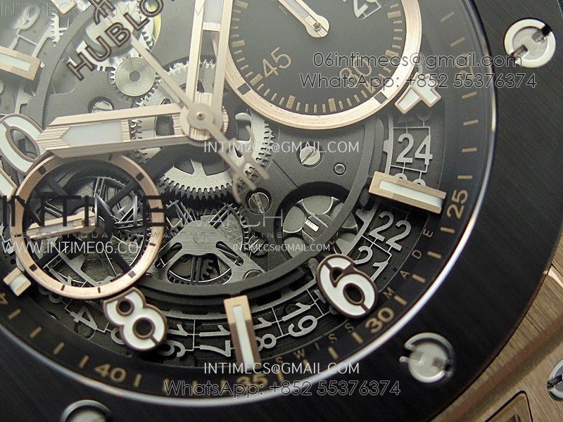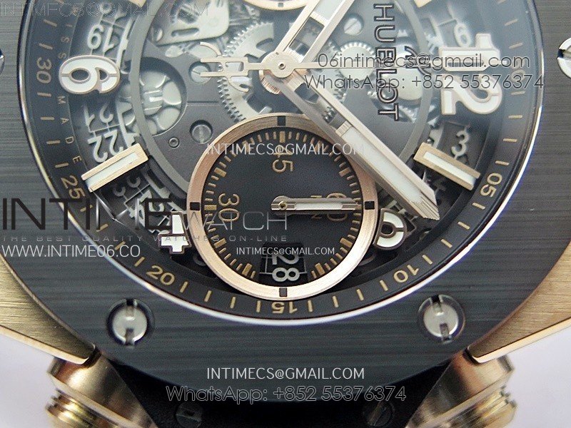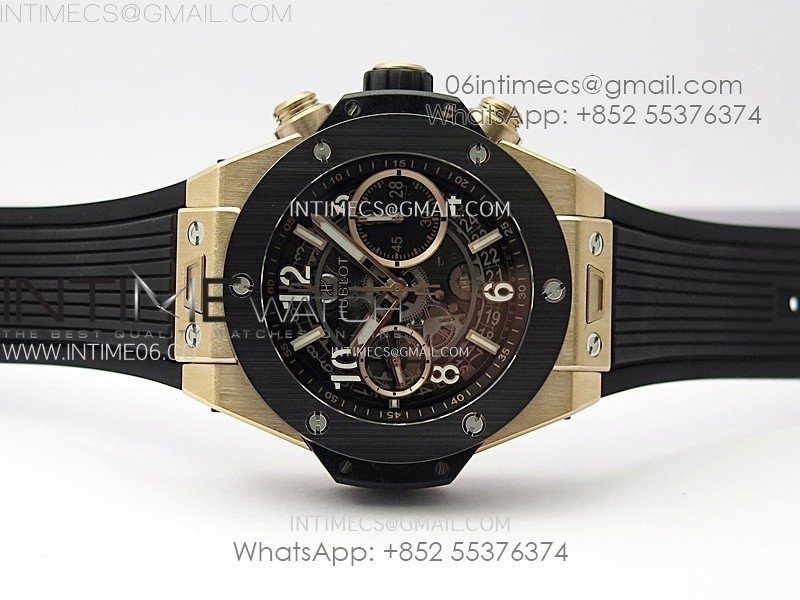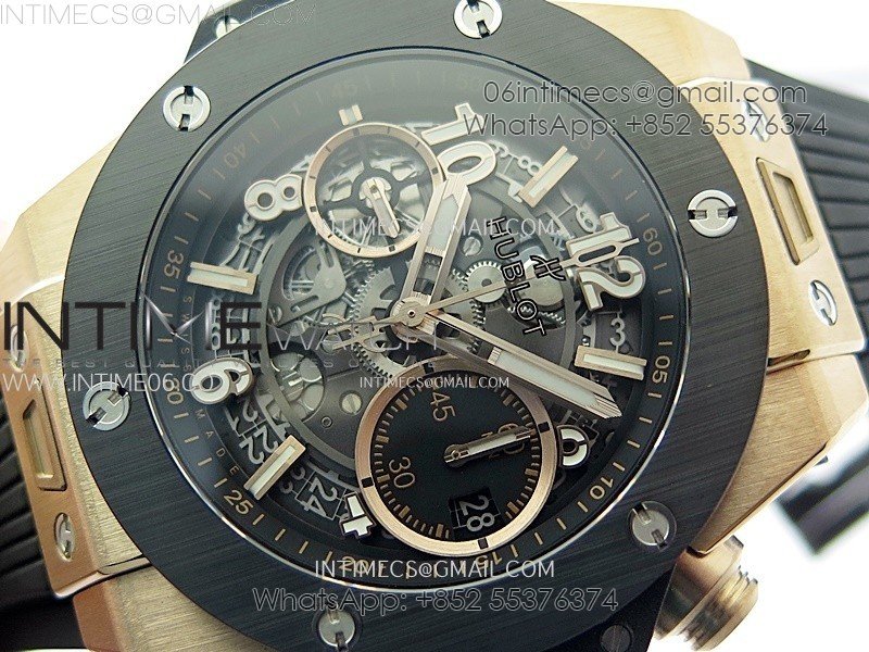 Hublot Big Bang Unico 42mm RG/Ceramic Bezel BBF 1:1 Best Edition Black Skeleton Dial on Black Rubber Strap A1280