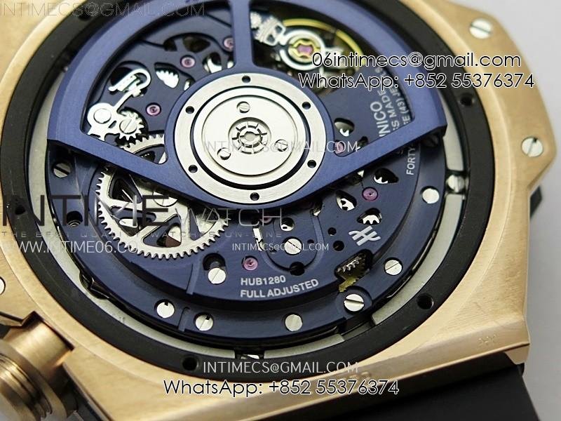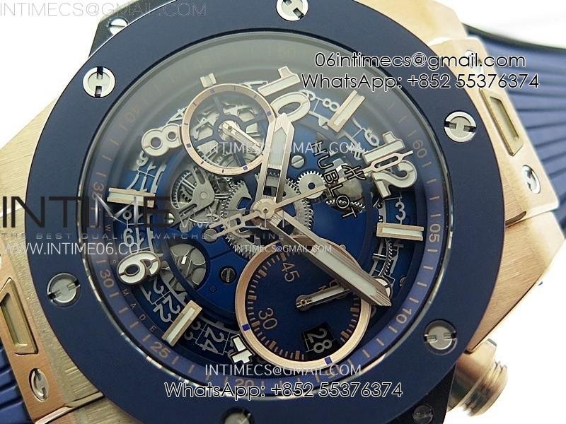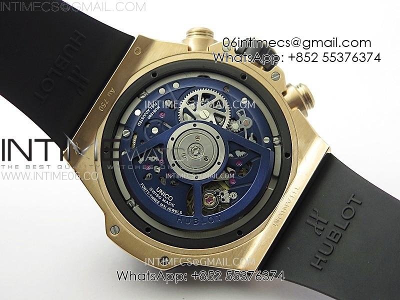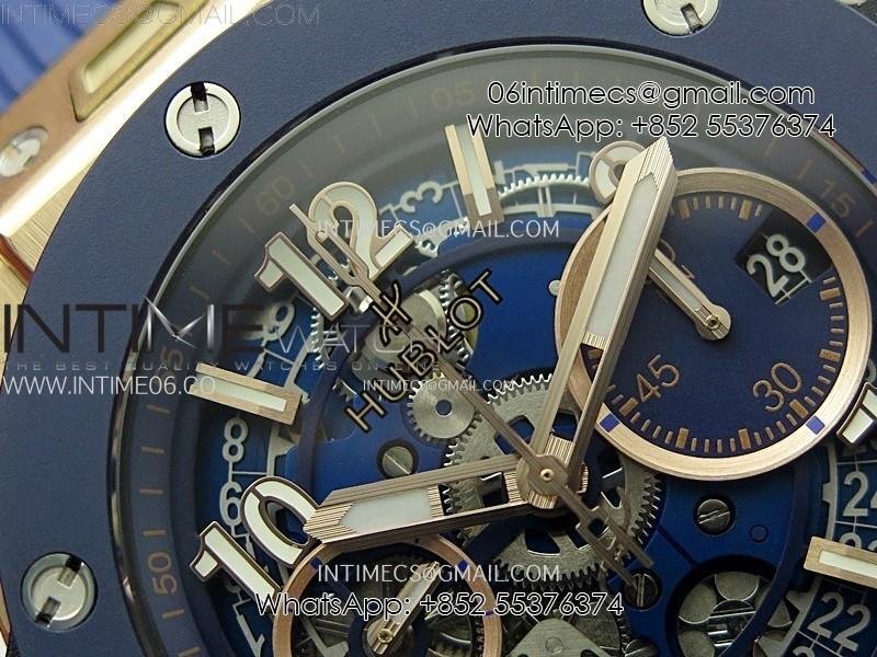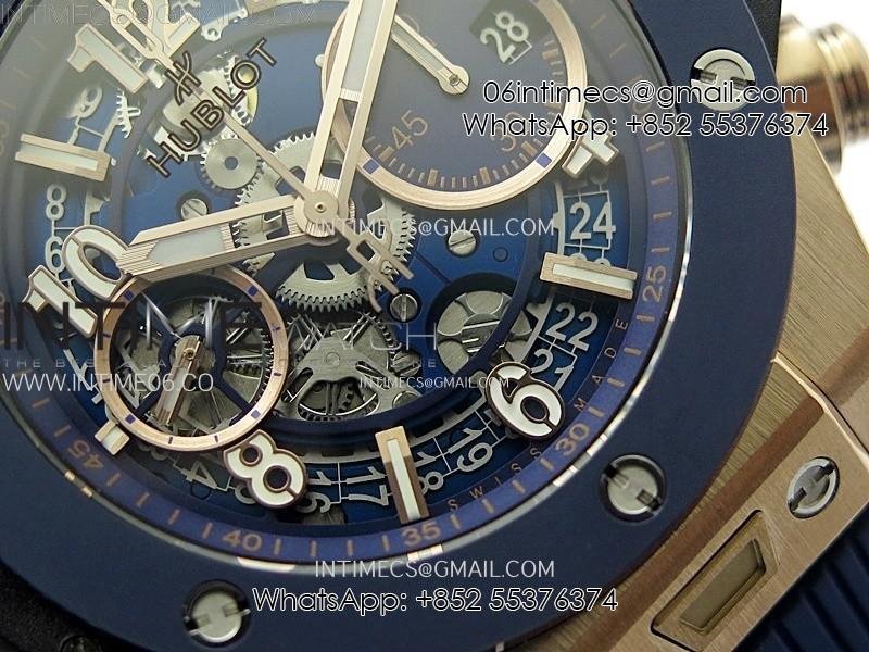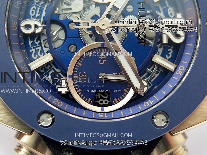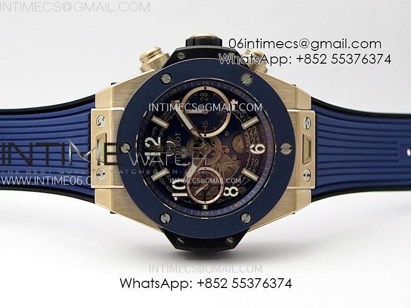 Hublot Big Bang Unico 42mm RG/Ceramic Bezel BBF 1:1 Best Edition Blue Skeleton Dial on Blue Rubber Strap A1280