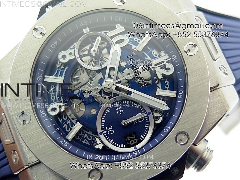 Hublot Big Bang Unico 42mm Titanium BBF 1:1 Best Edition Blue Skeleton Dial on Blue Rubber Strap A1280