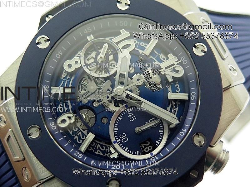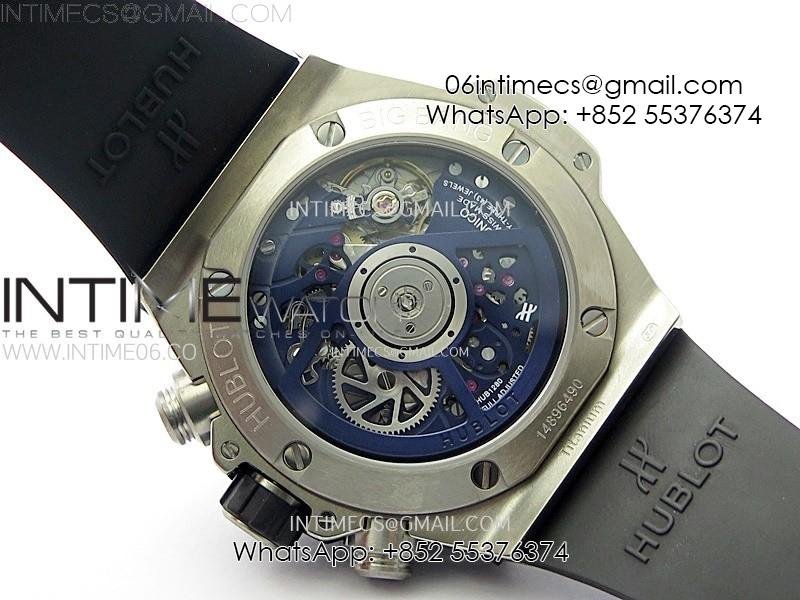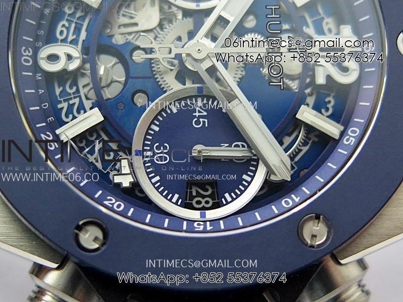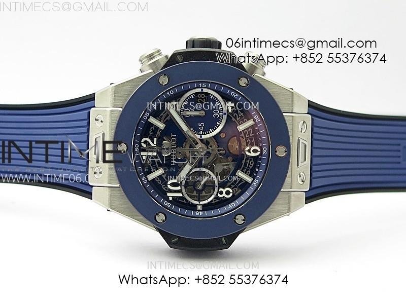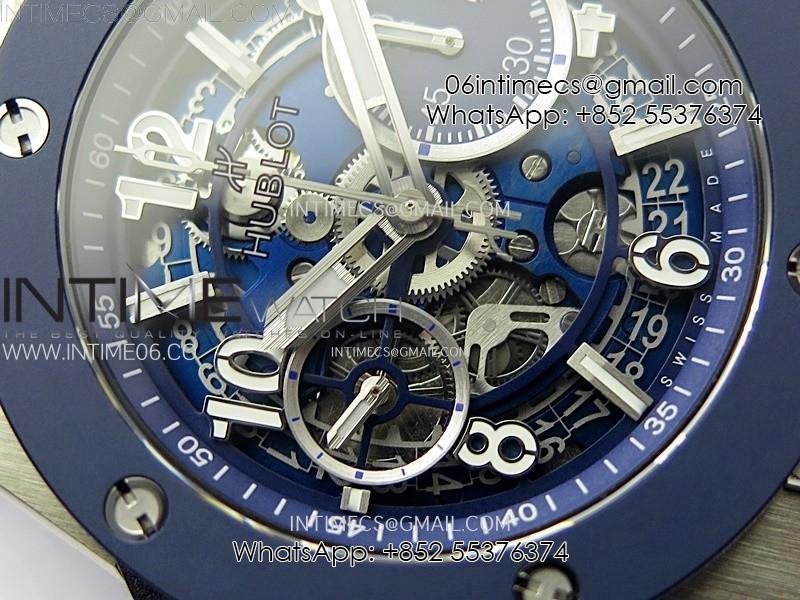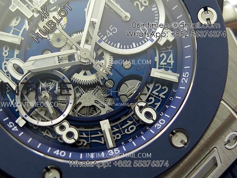 Hublot Big Bang Unico 42mm Titanium/Ceramic Bezel BBF 1:1 Best Edition Blue Skeleton Dial on Blue Rubber Strap A1280