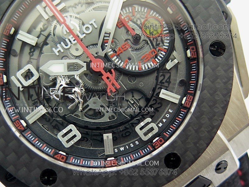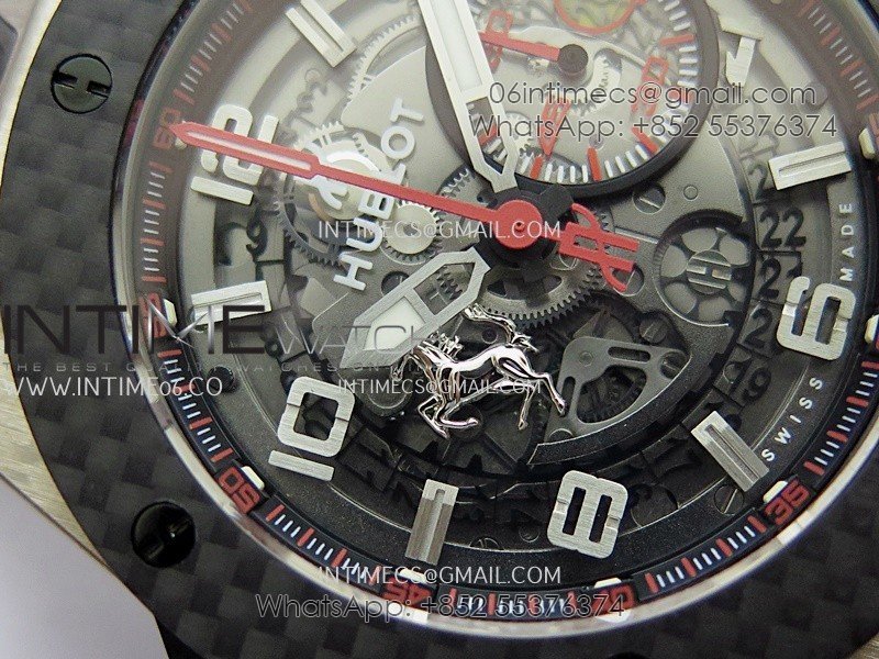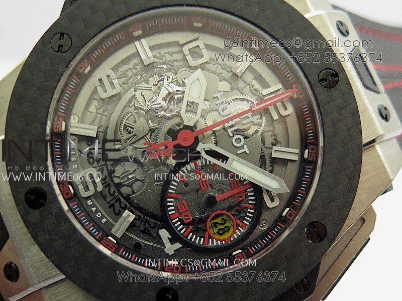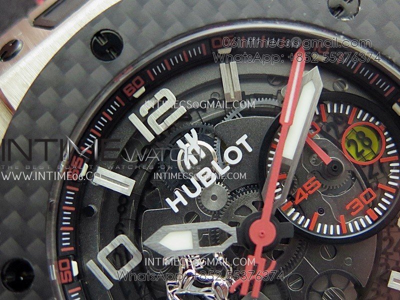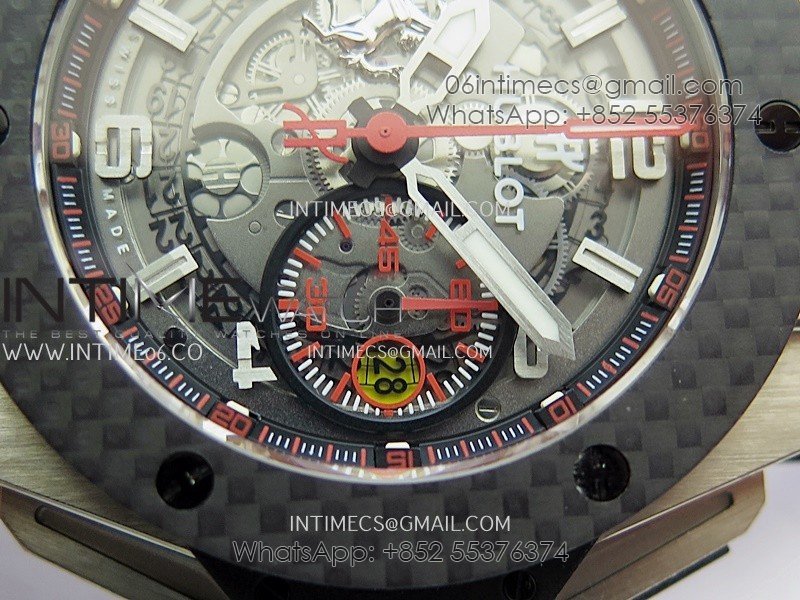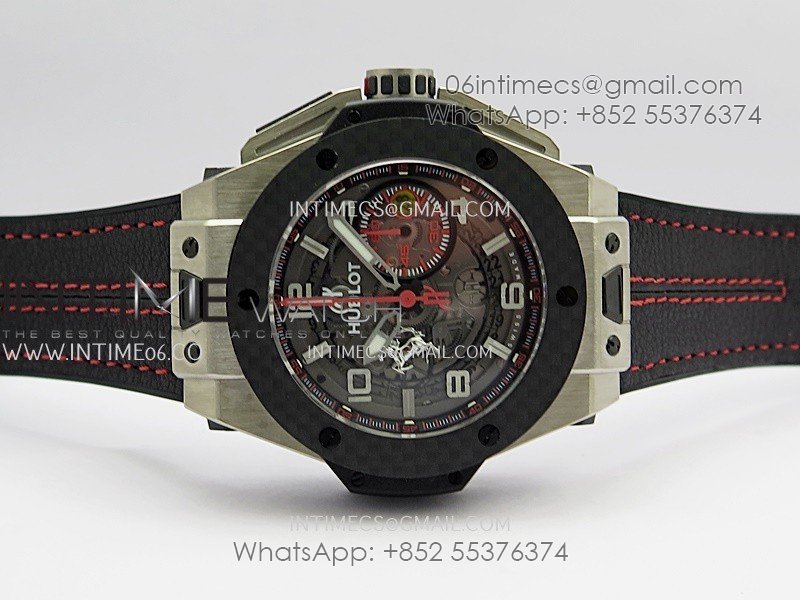 Hublot Big Bang Unico 44mm Carbon/SS HBBF 1:1 Best Edition Skeleton Dial Silver Marker On Black Gummy Strap A1280