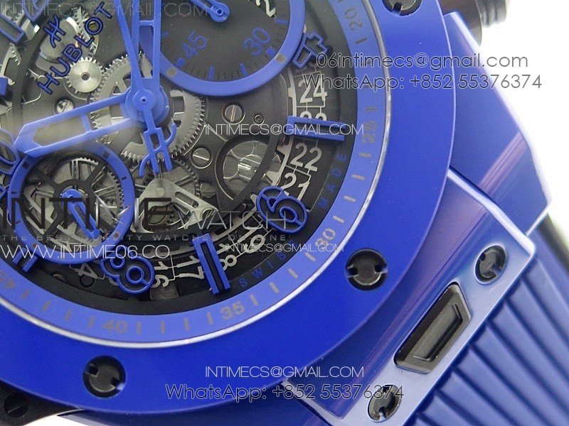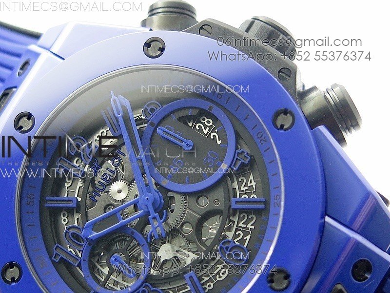 Hublot Big Bang Unico Blue Ceramic ZF 1:1 Best Edition Skeleton Dial on Blue Gummy Strap A1280