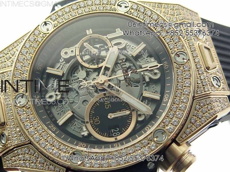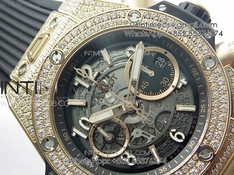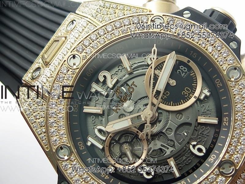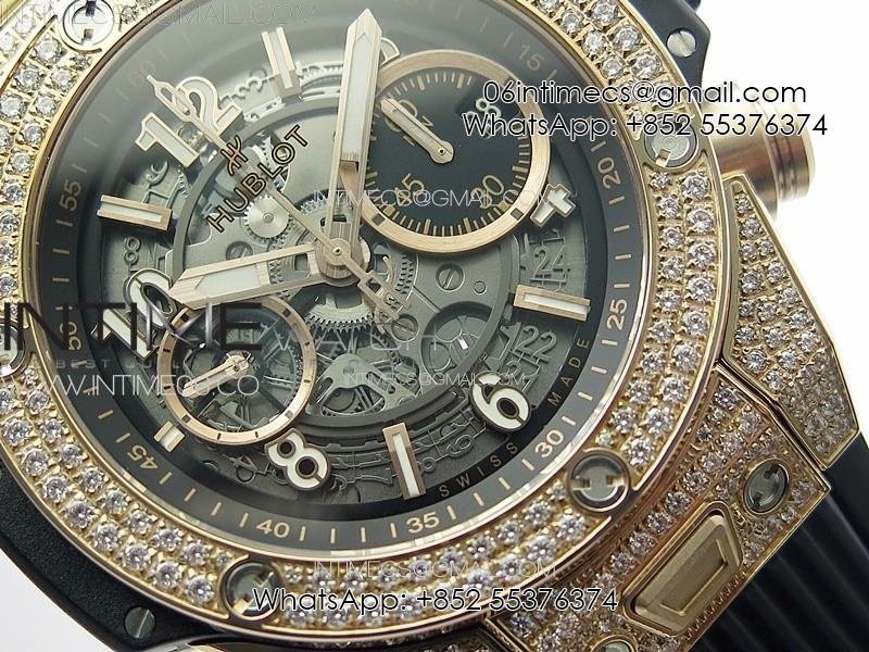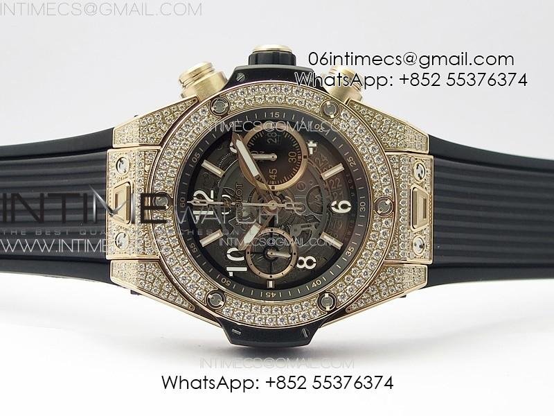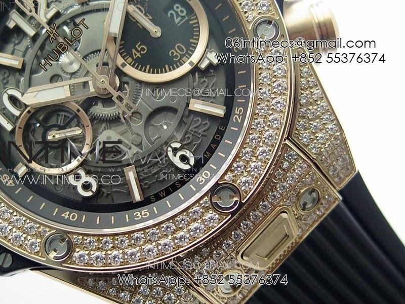 Hublot Big Bang Unico RG Full Diamonds ZF 1:1 Best Edition Skeleton Dial on Black Rubber Strap A1280