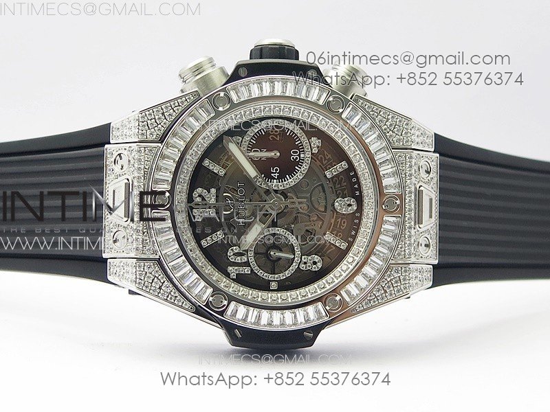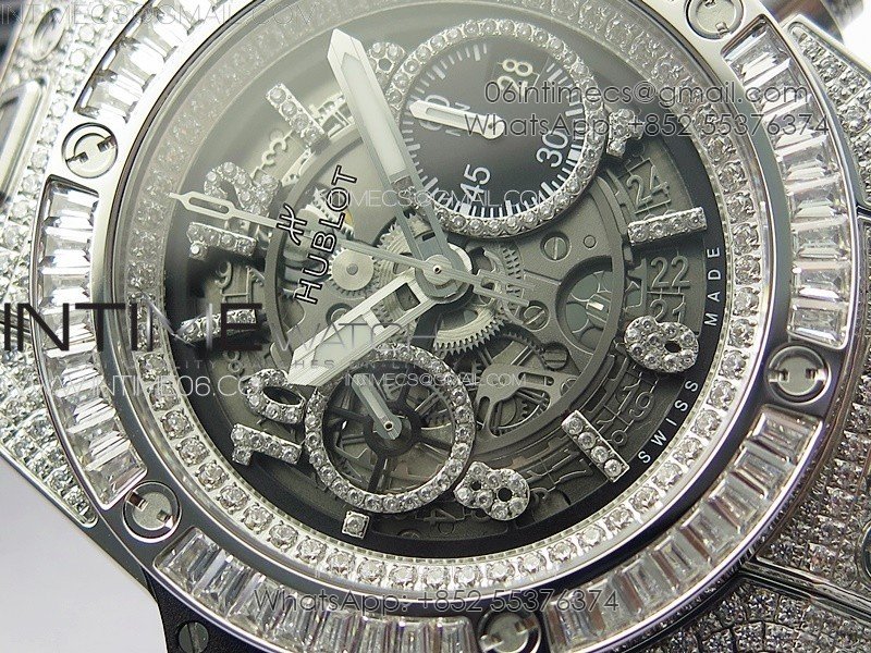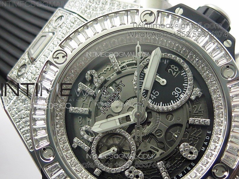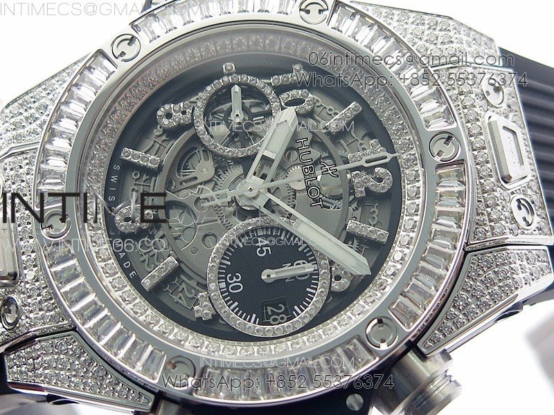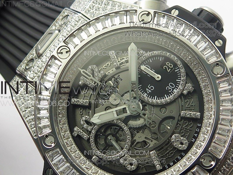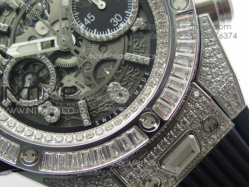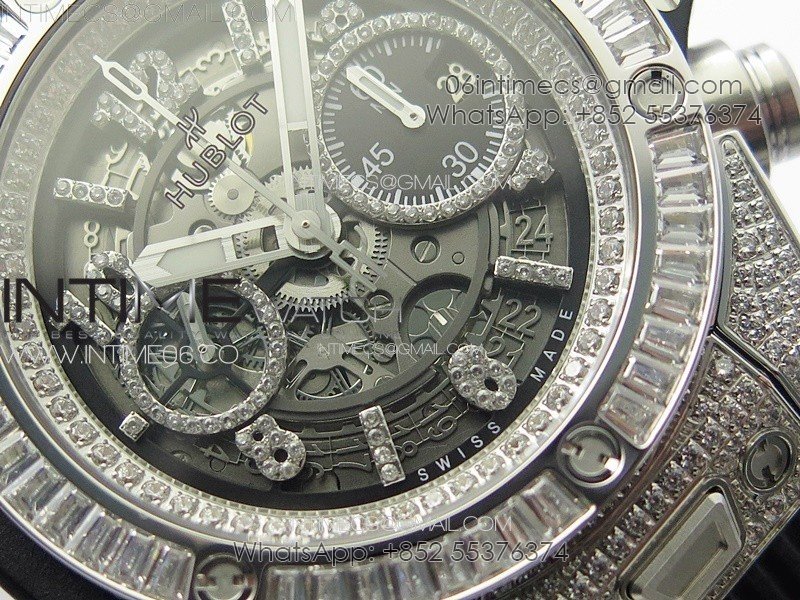 Hublot Big Bang Unico Titanium Full Diamonds ZF 1:1 Best Edition Skeleton Dial T Diamonds Bezel on Black Rubber Strap A1280