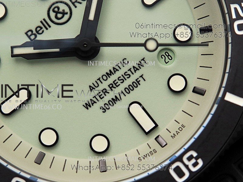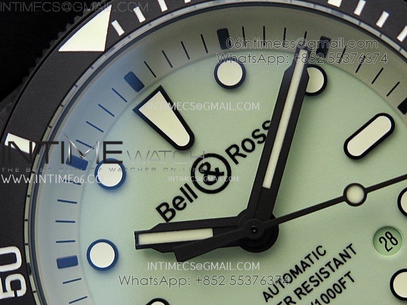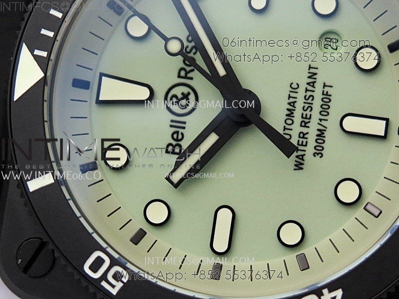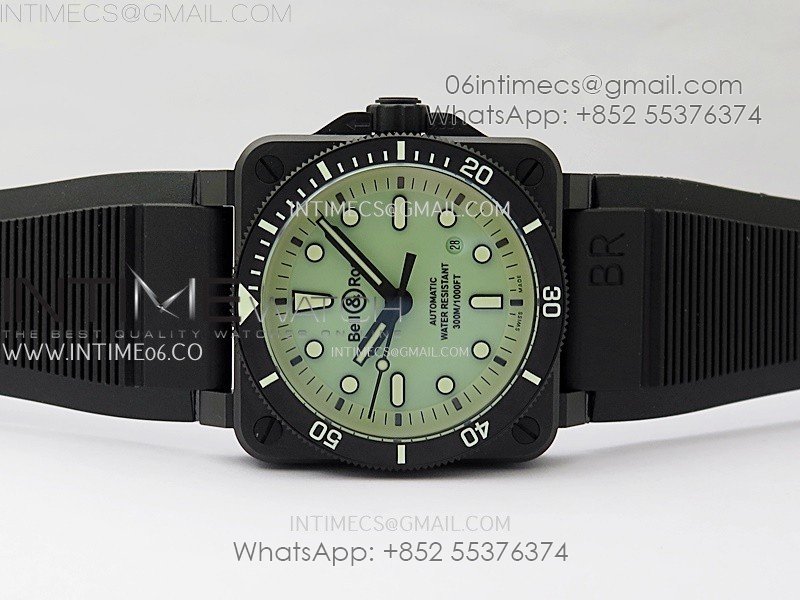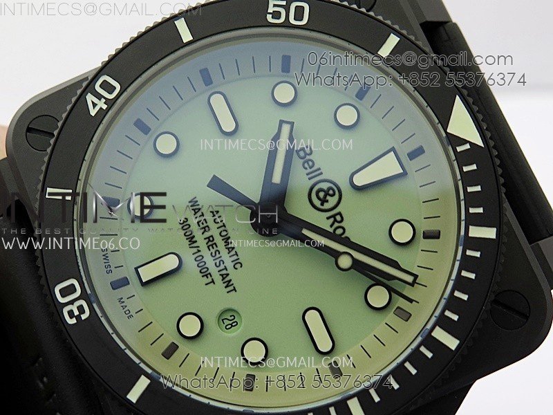 Instruments BR03A-D Ceramic M+F 1:1 Best Edition Green Lumed Dial on Rubber Strap MIYOTA 9015 (Free Nylon Strap) V3
