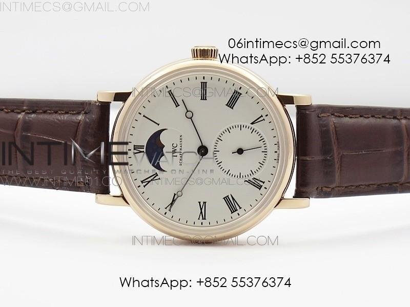 IW Moonphase RG KV Best Edition white dial on brown leather strap