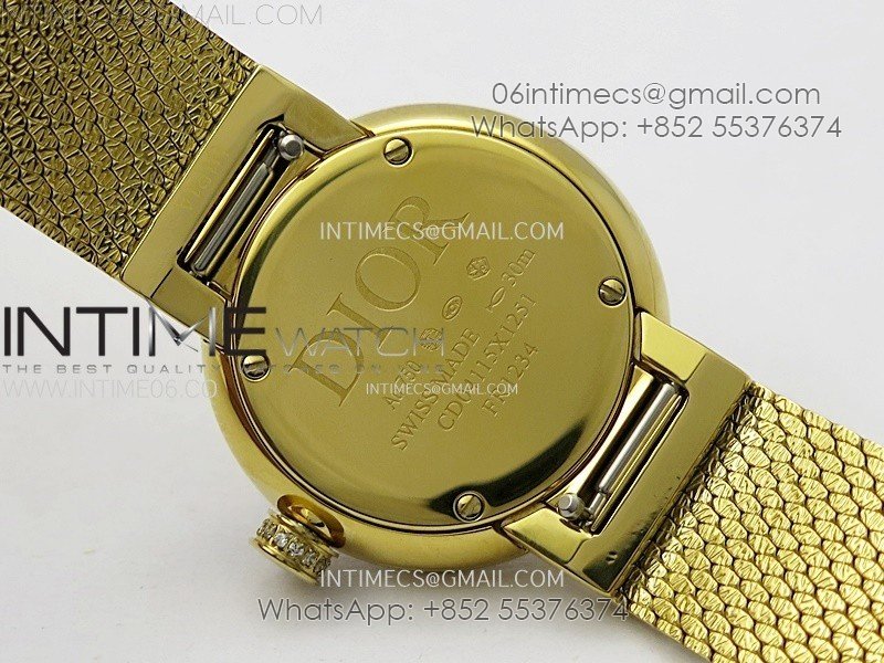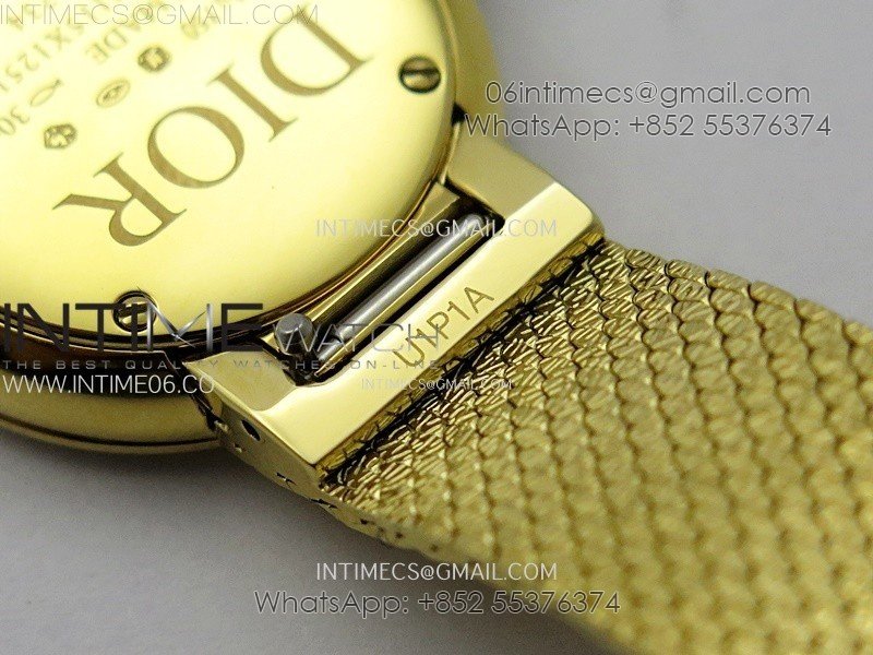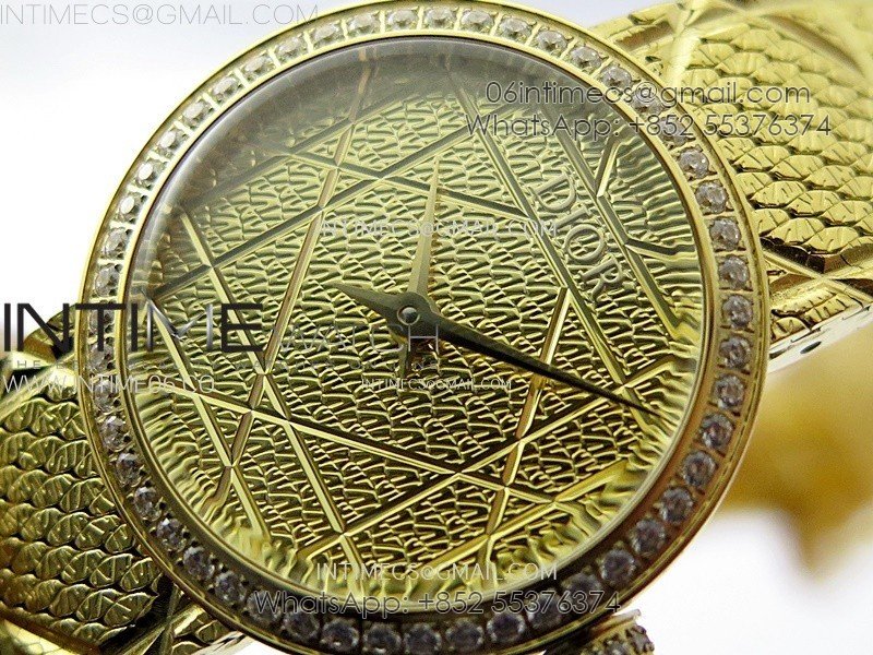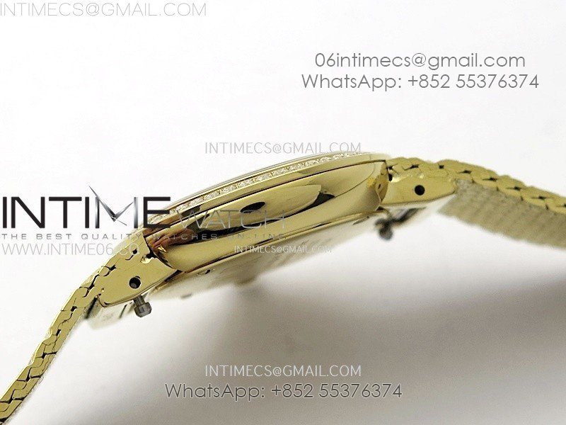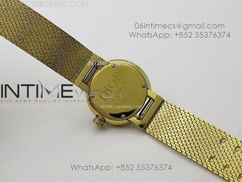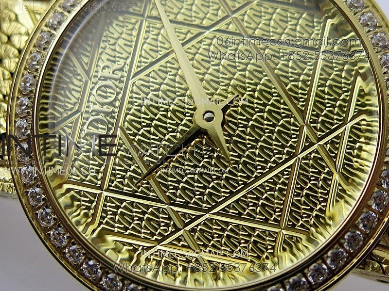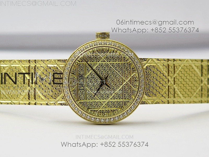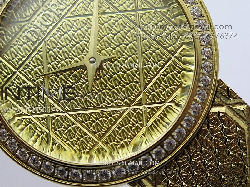 La D de dior Satine 25mm Diamond Bezel YG Case 8848F 1:1 Best Edition Gold Dial on YG bracelet Swiss Quartz