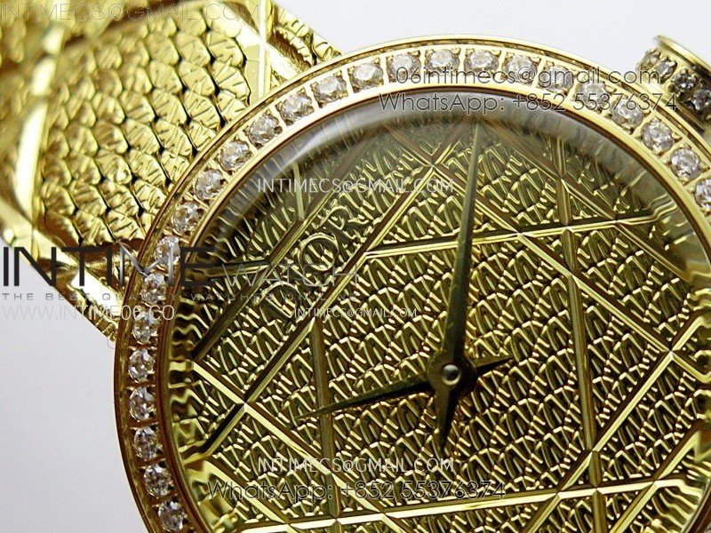 Bezel: 18K yellow gold plated solid 316 stainless steel bezel with diamonds