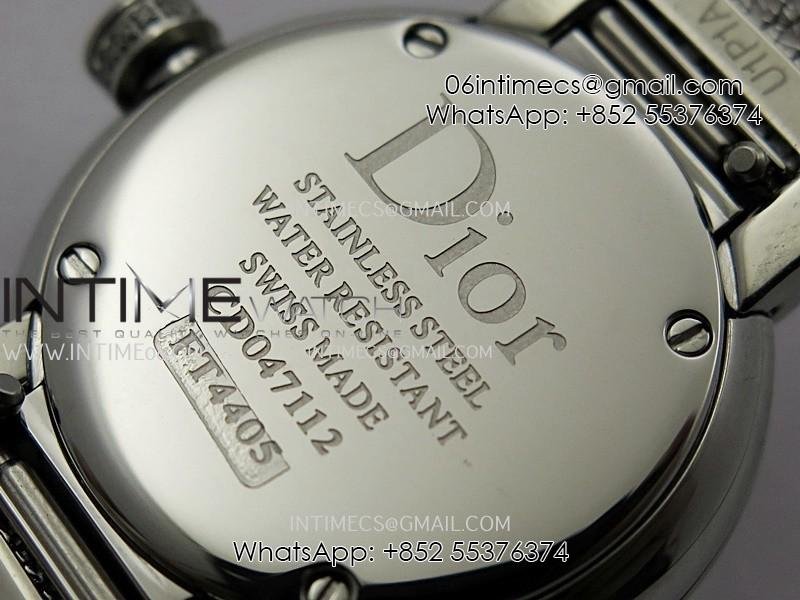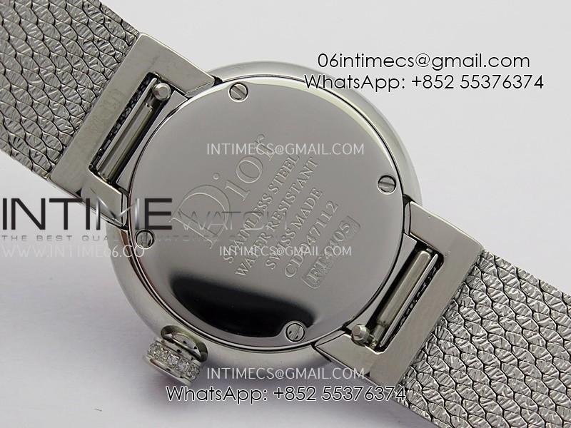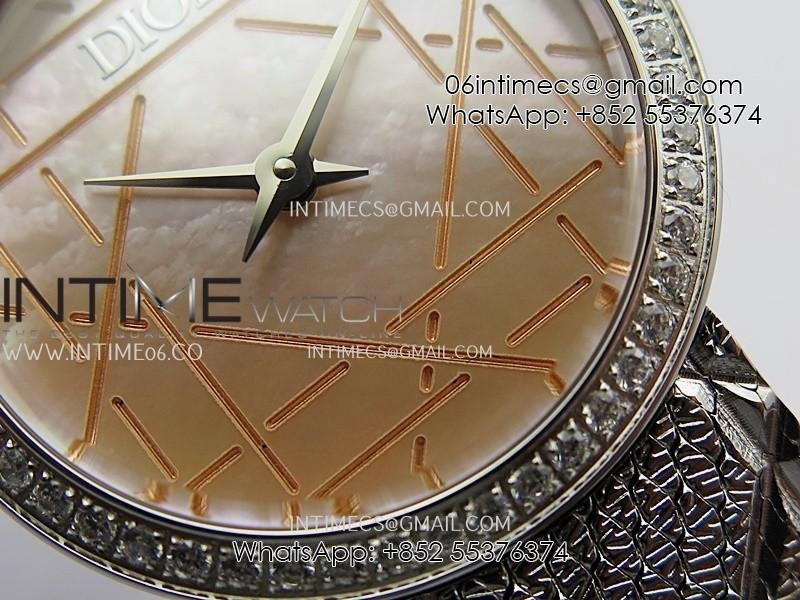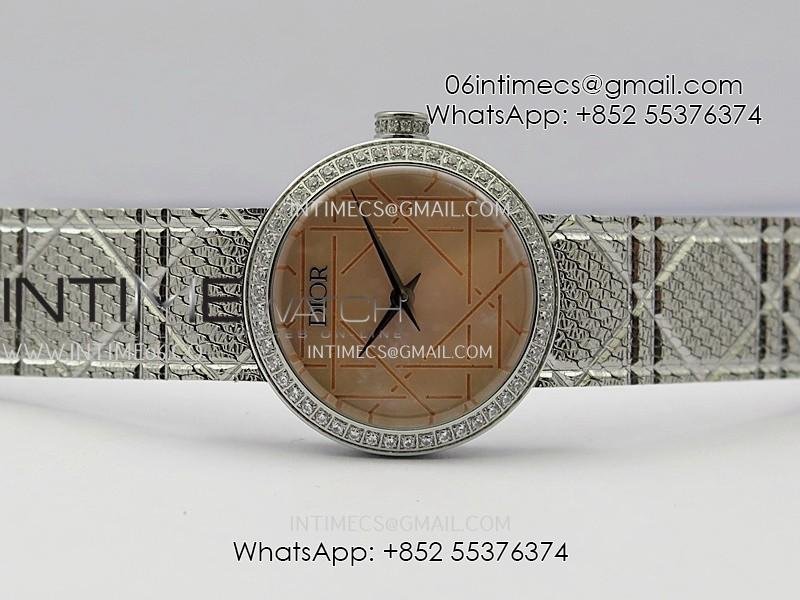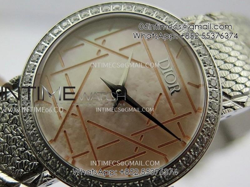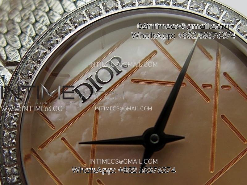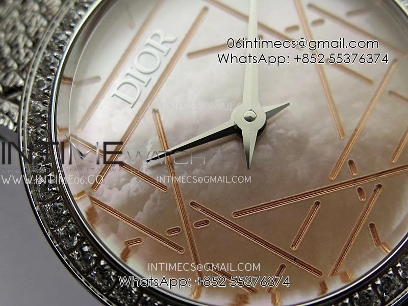 La D de Dior Satine 25mm SS/Diamonds 8848F 1:1 Best Edition Pink MOP Dial On SS bracelet Swiss Quartz