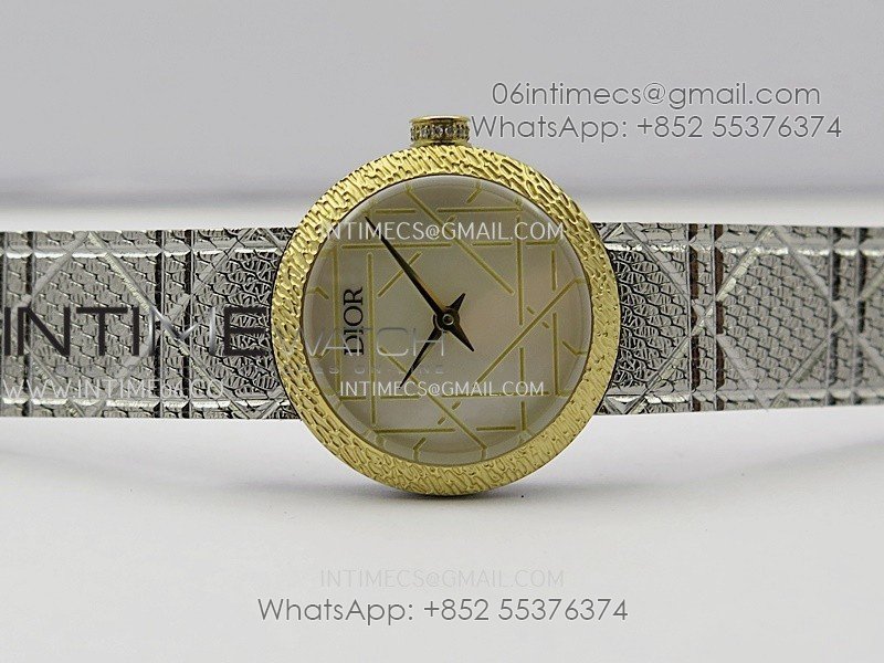 La D de Dior Satine 25mm SS/YG 8848F 1:1 Best Edition White MOP Dial On SS bracelet Swiss Quartz