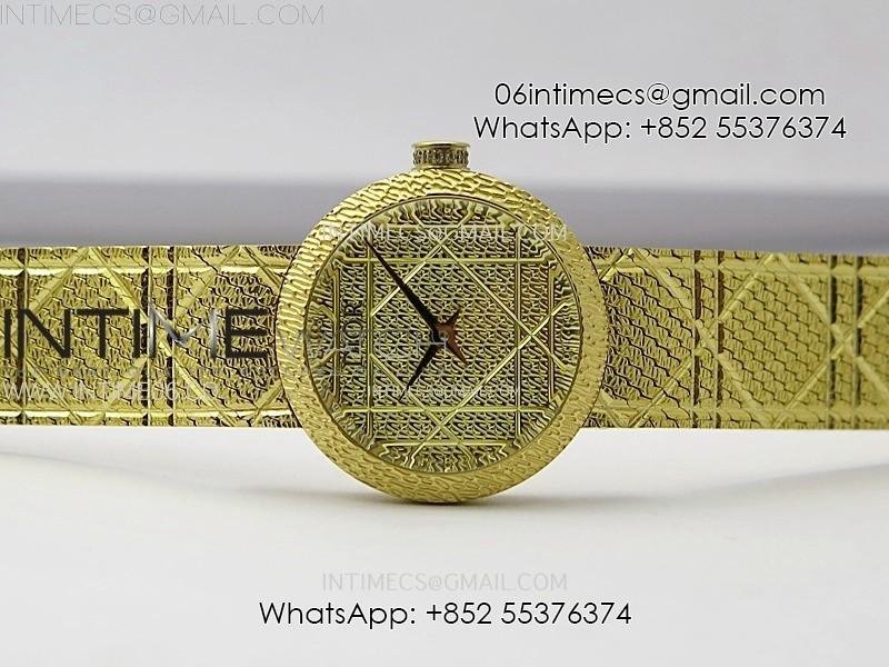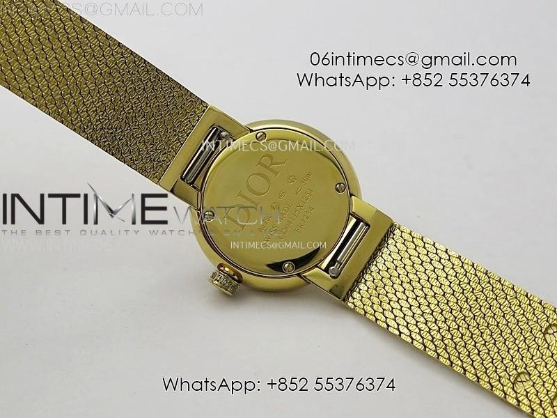 La D de dior Satine 25mm YG Case 8848F 1:1 Best Edition Gold Dial on YG bracelet Swiss Quartz