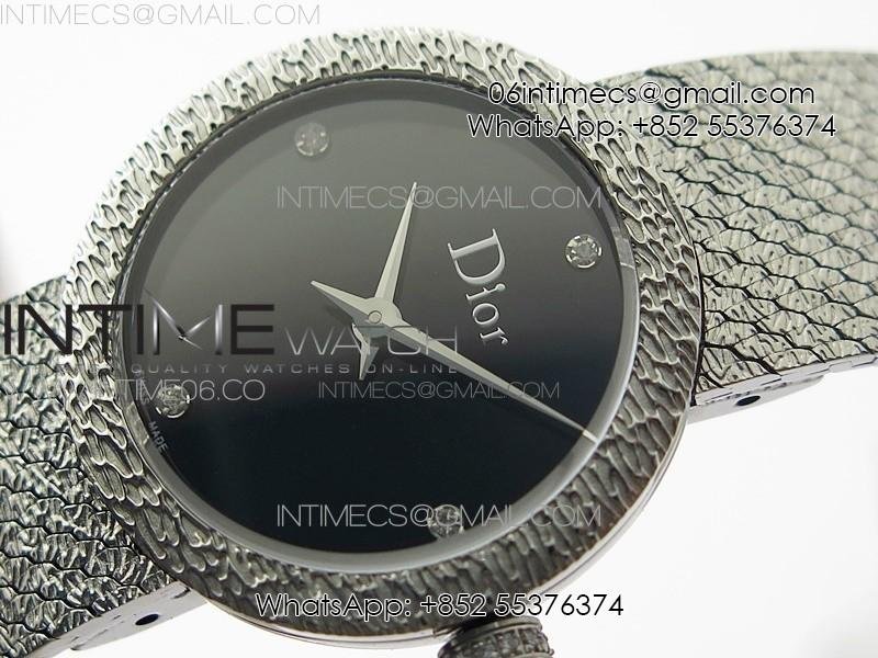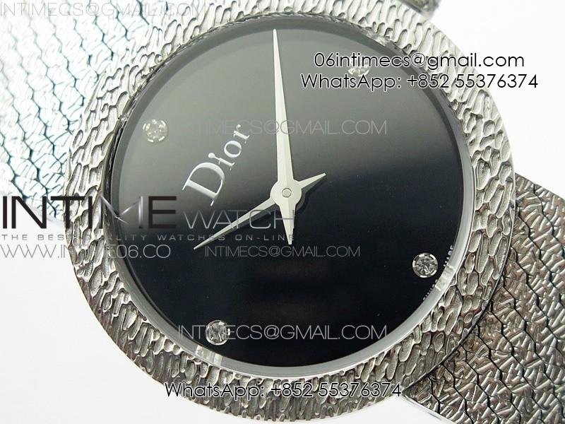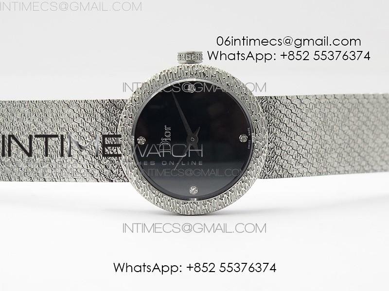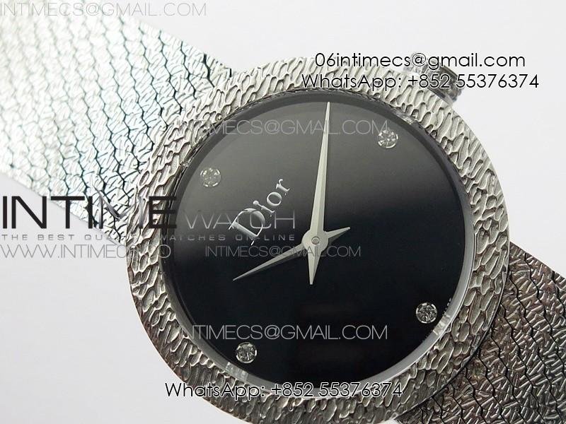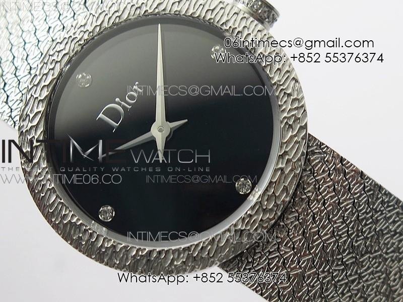 La D de dior Satine SS Case 8848F 1:1 Best Edition Black Dial on SS bracelet Swiss Quartz