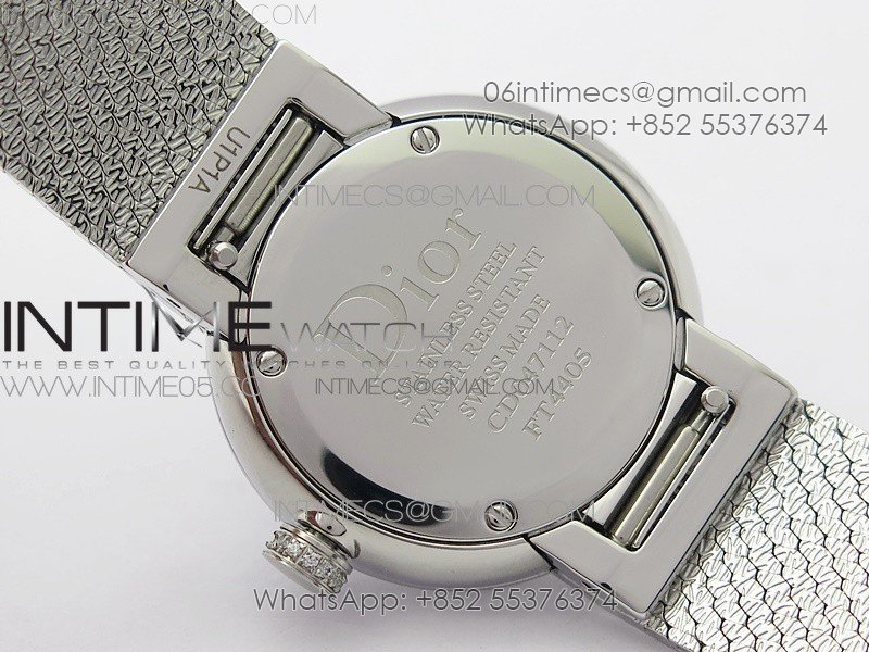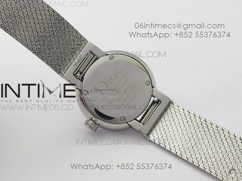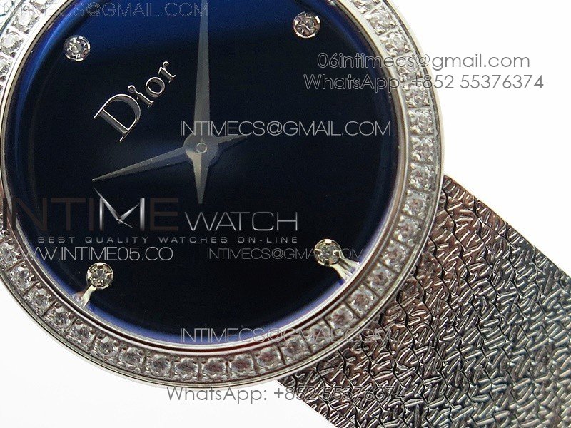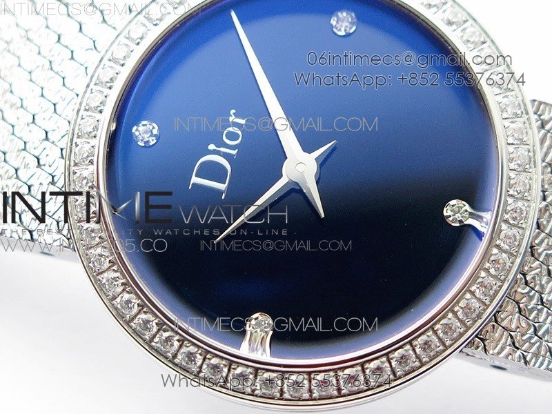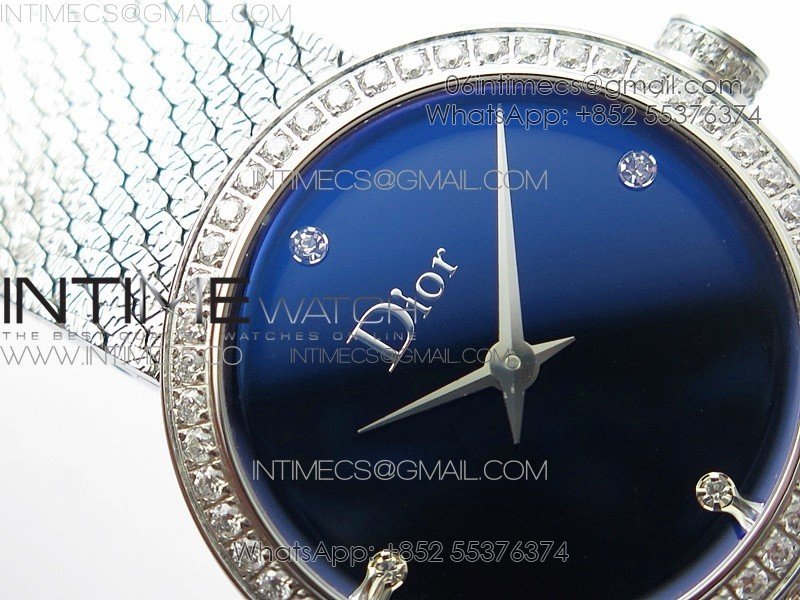 La d de dior satine SS Crystal Bezel 8848F 1:1 Best Edition Blue Dial on SS bracelet Swiss Quartz
