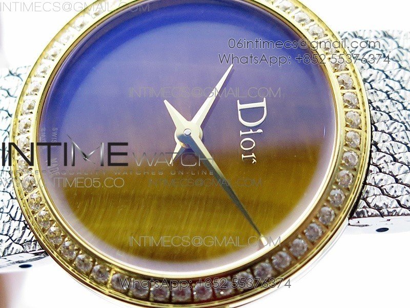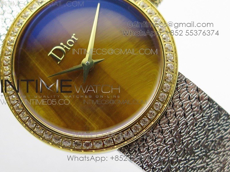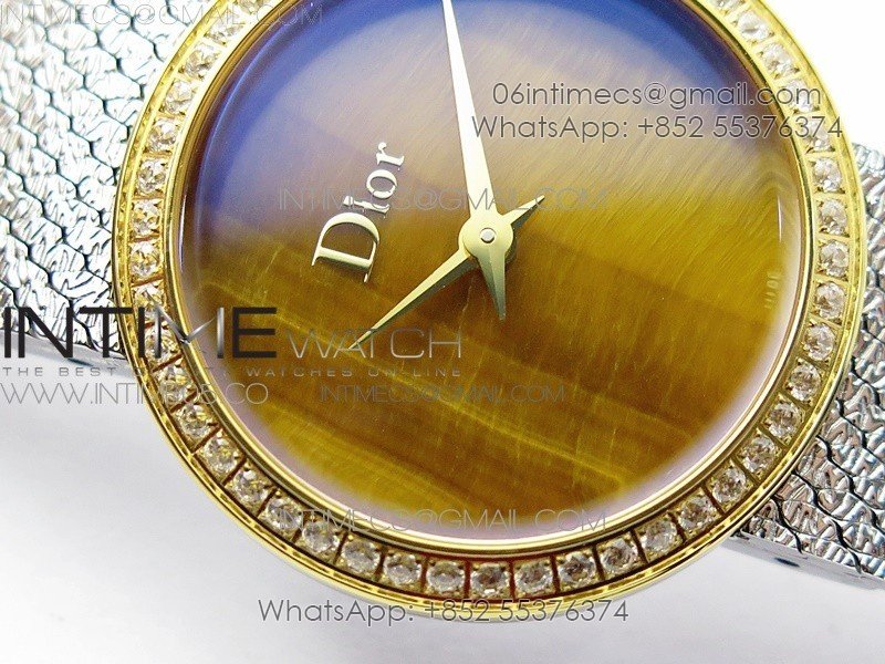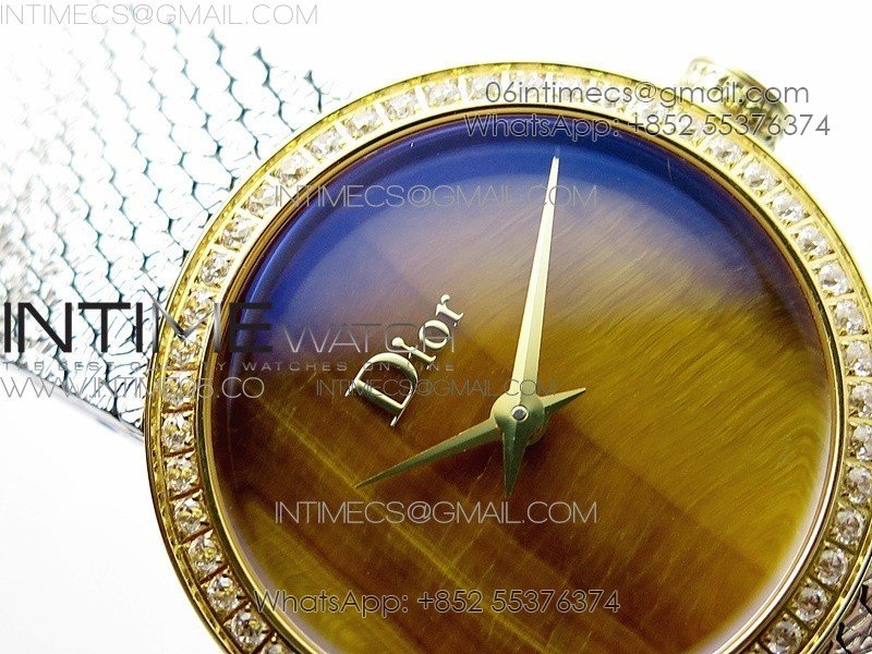 La d de dior statine SS/YG Crystal Bezel 8848F 1:1 Best Edition Tiger eye dial on SS bracelet Swiss Quartz