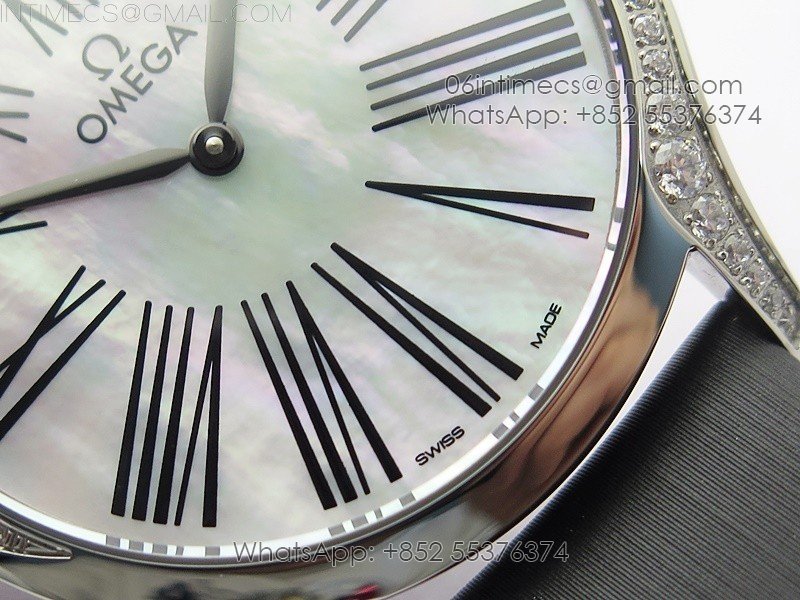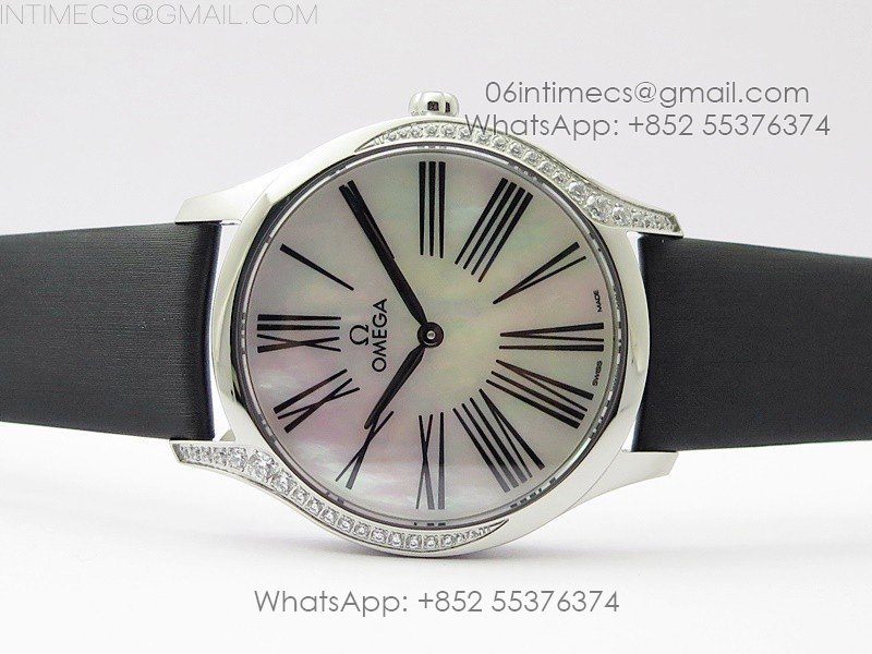 Ladies’ De Ville Trésor Diamond SS 3AF 1:1 Best Edition White Dial Black Markers On Black fabric strap Swiss Quartz