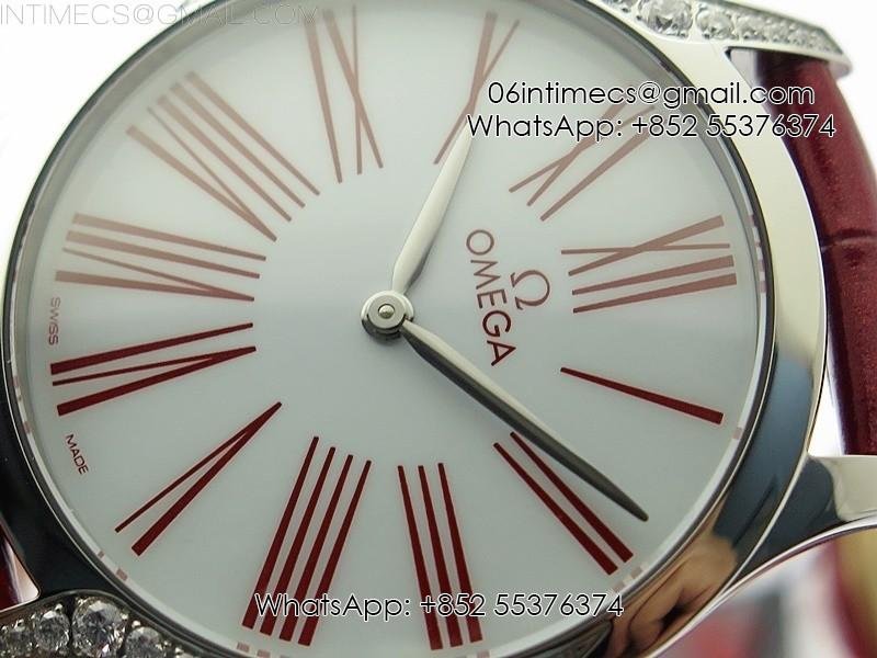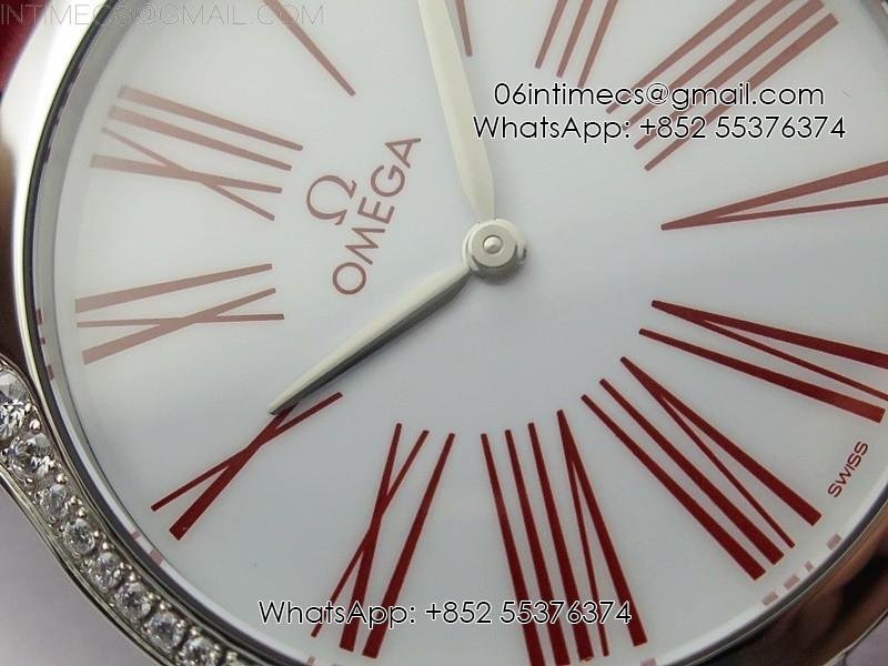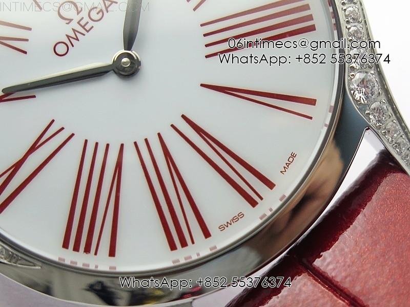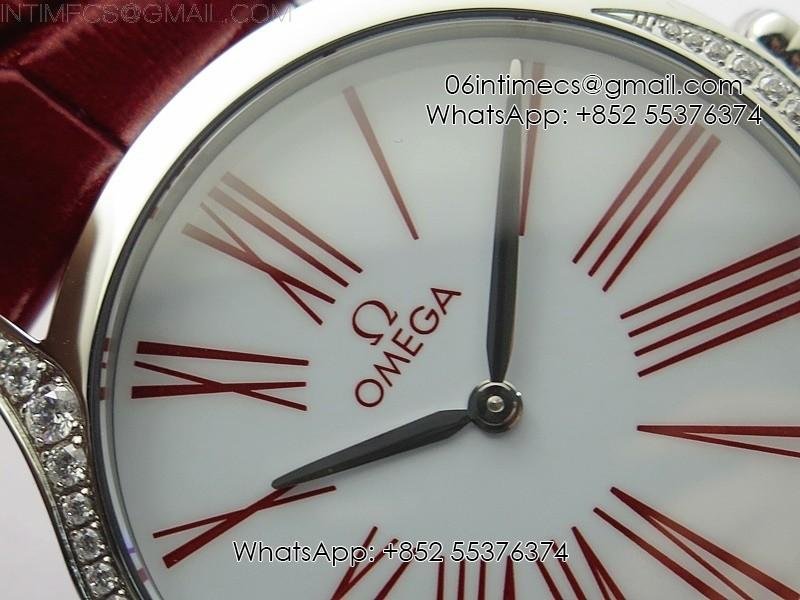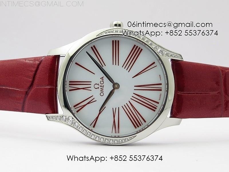 Ladies’ De Ville Trésor Diamond SS 3AF 1:1 Best Edition White Dial On Red Leather Strap Swiss Quartz