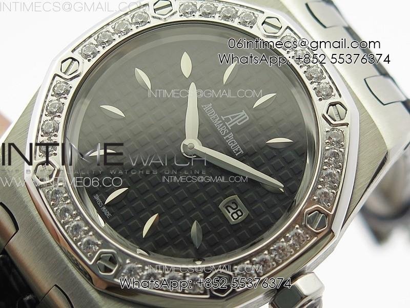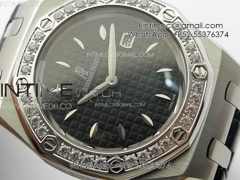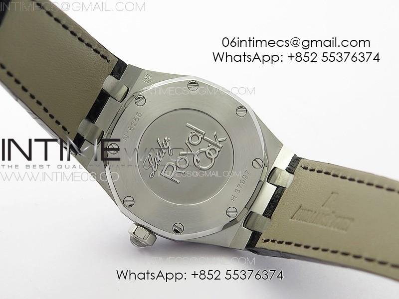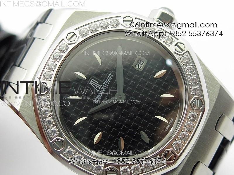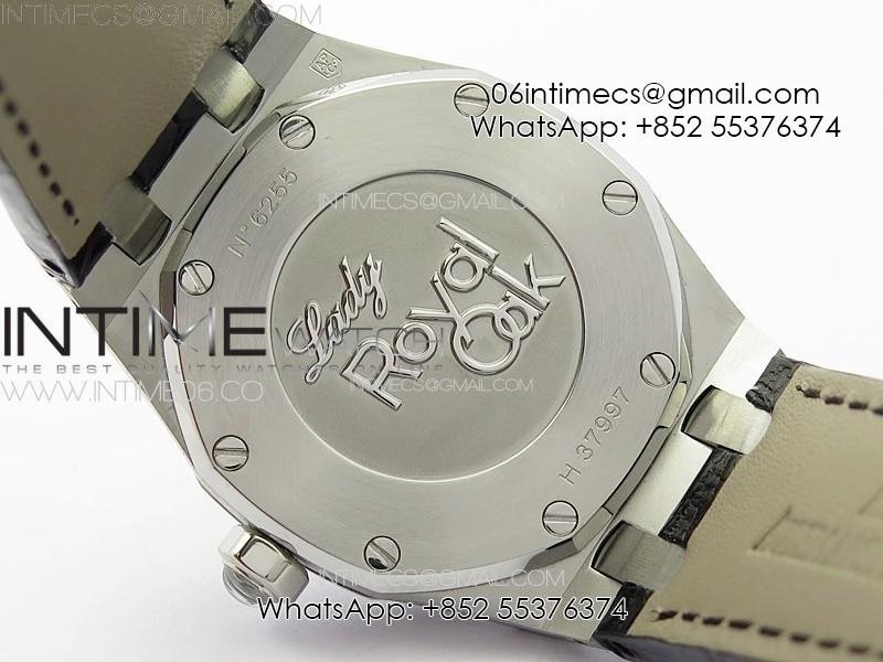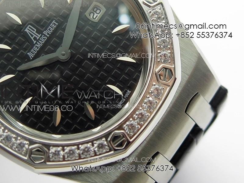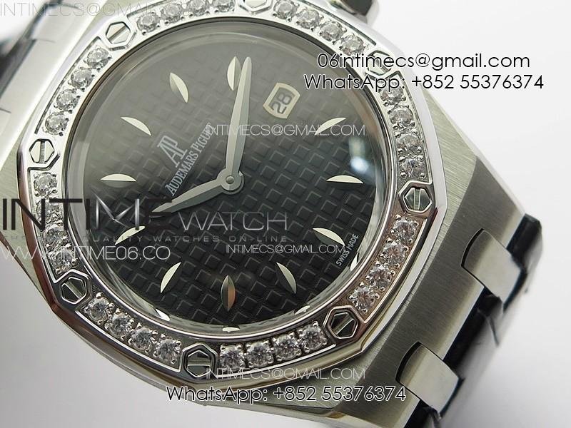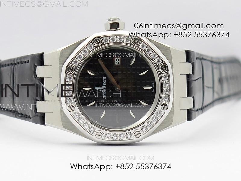 Lady Royal Oak 33mm 67620ST SS APSF 1:1 Best Edition Black Textured Dial on Black Leather Strap RONDA Quartz