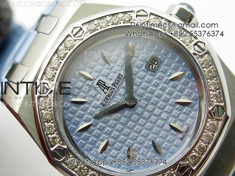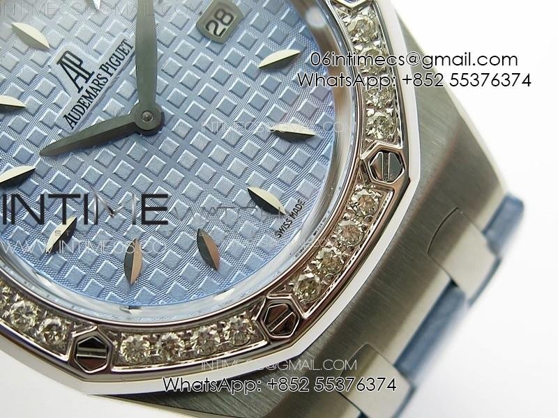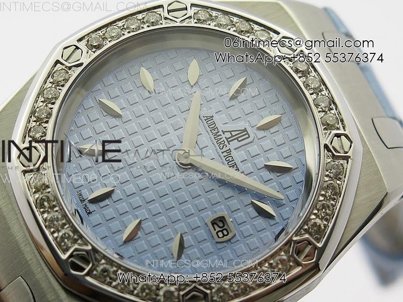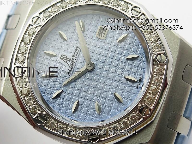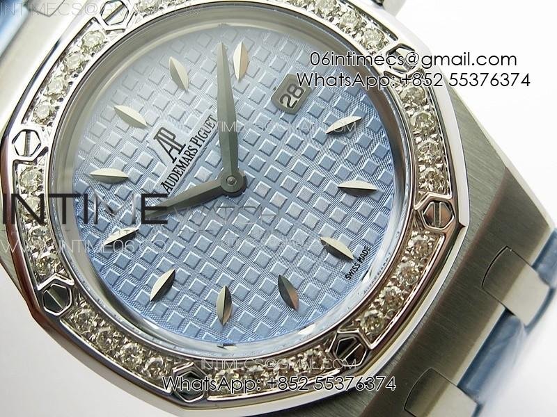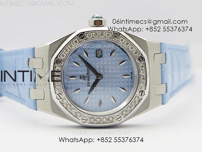 Lady Royal Oak 33mm 67620ST SS APSF 1:1 Best Edition Blue Textured Dial on Blue Leather Strap RONDA Quartz