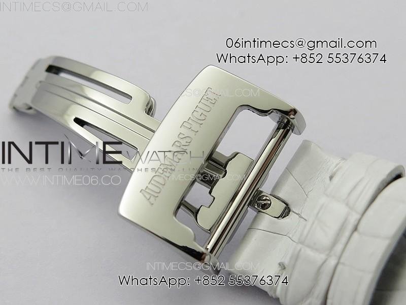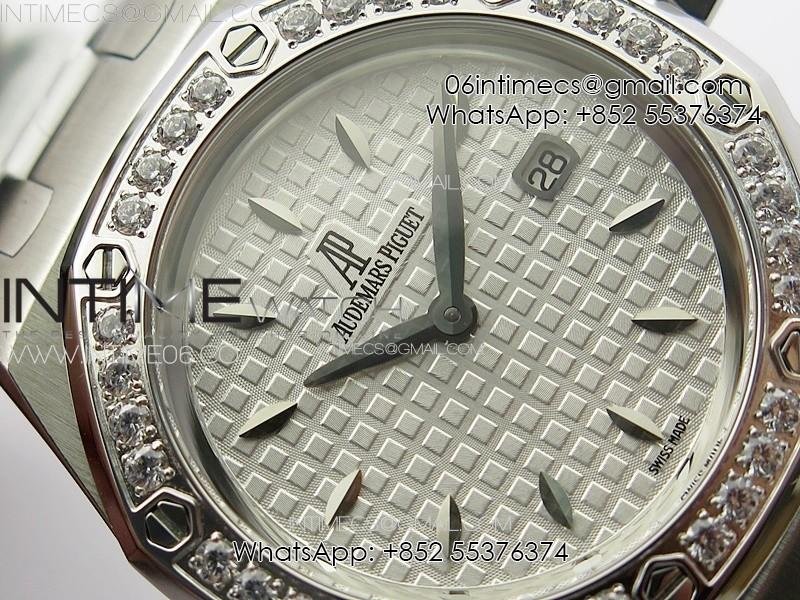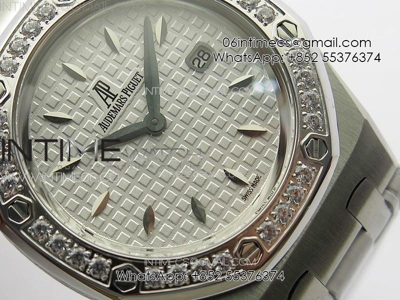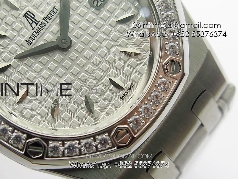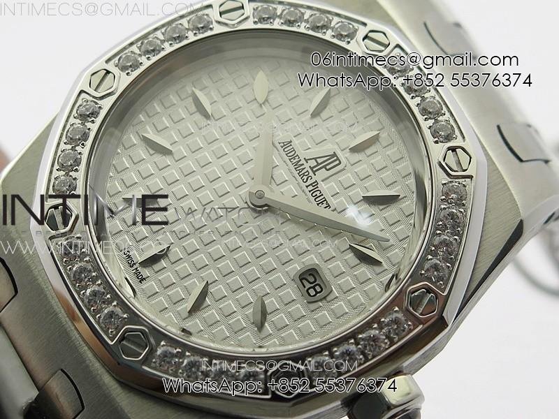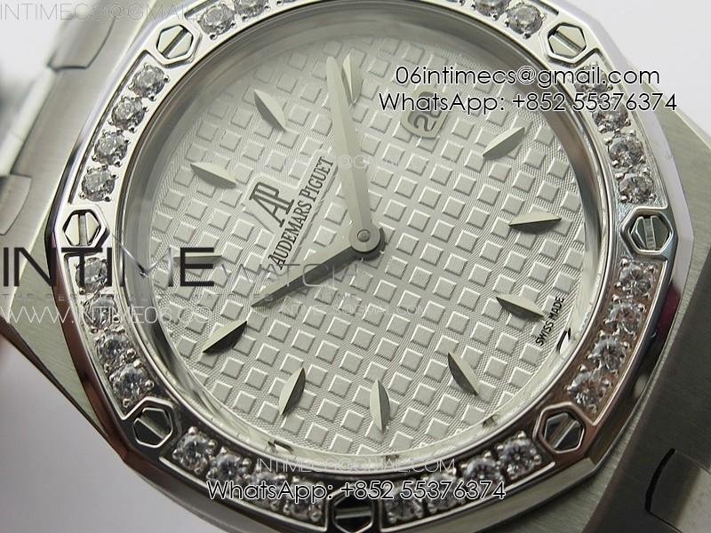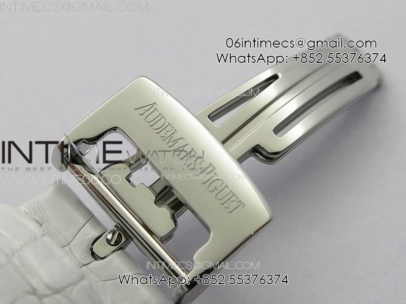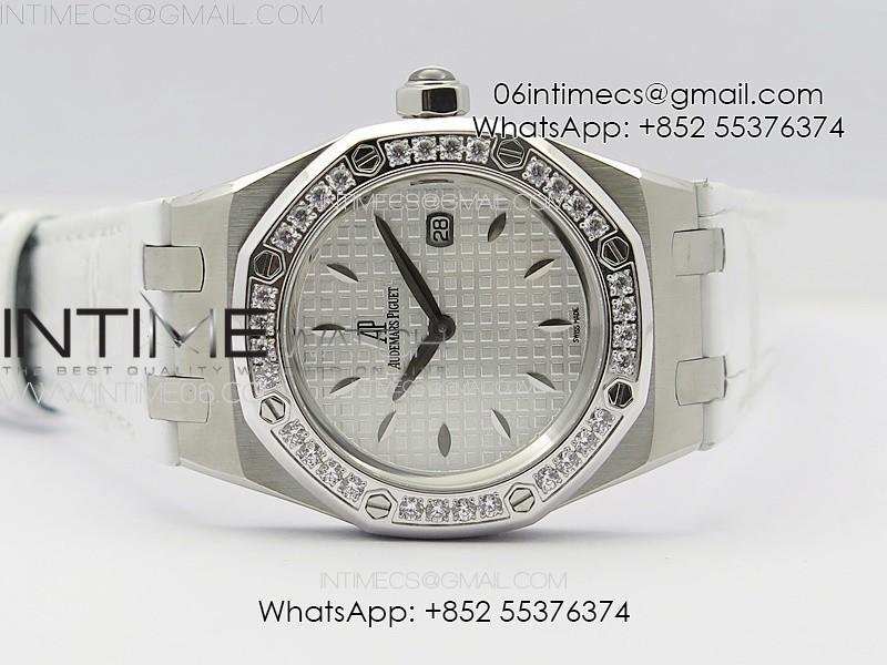 Lady Royal Oak 33mm 67620ST SS APSF 1:1 Best Edition White Textured Dial on White Leather Strap RONDA Quartz