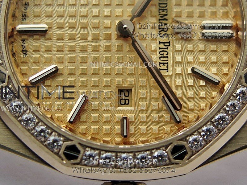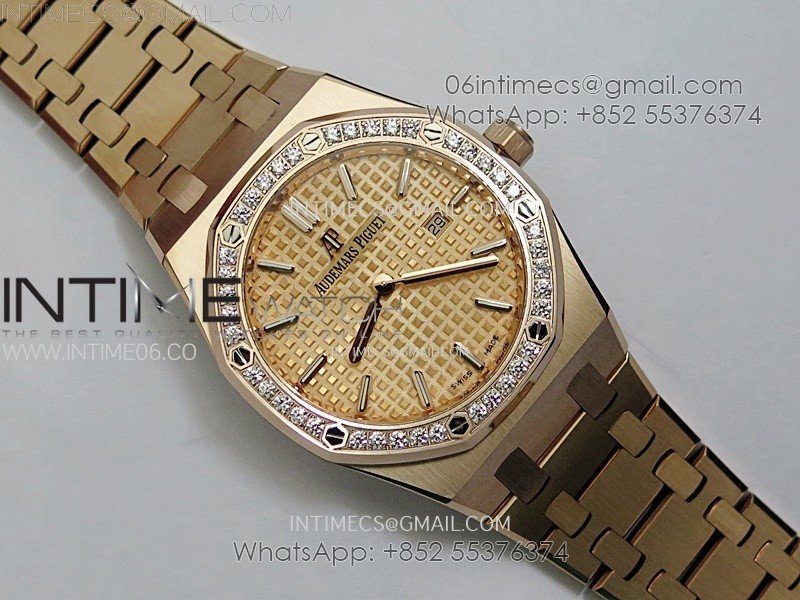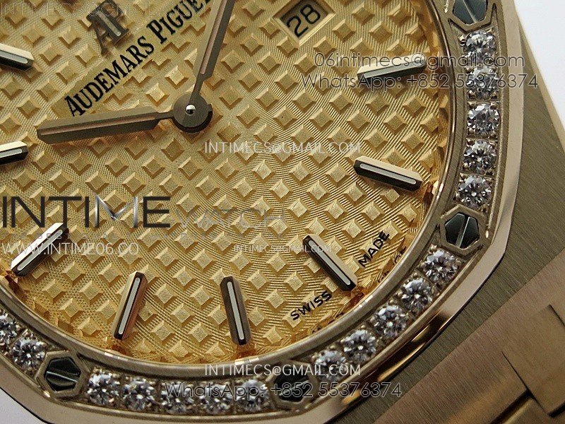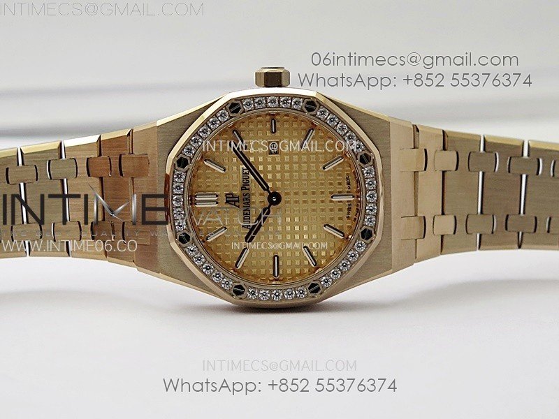 Lady Royal Oak 33mm 67651 Diamonds Bezel RG ZF 1:1 Best Edition RG Textured Dial on RG Bracelet RONDA Quartz