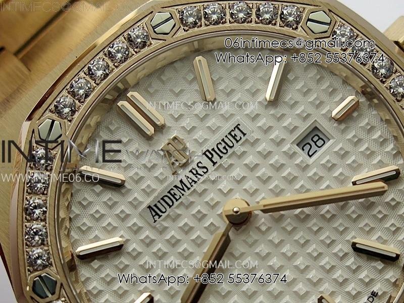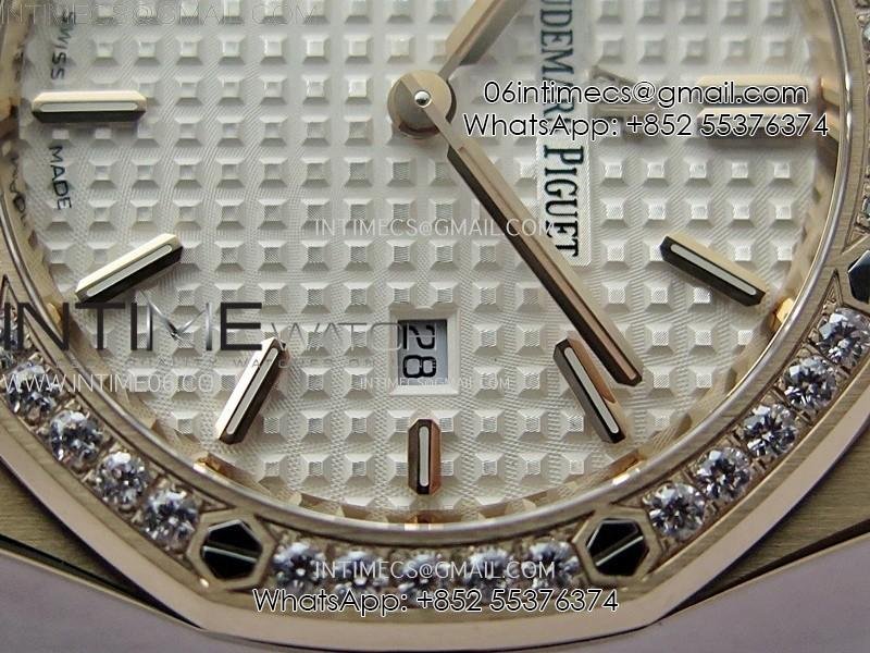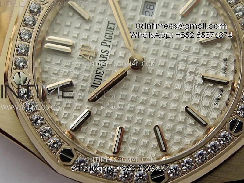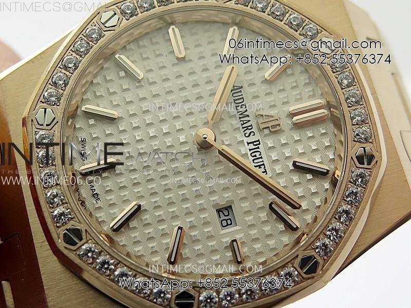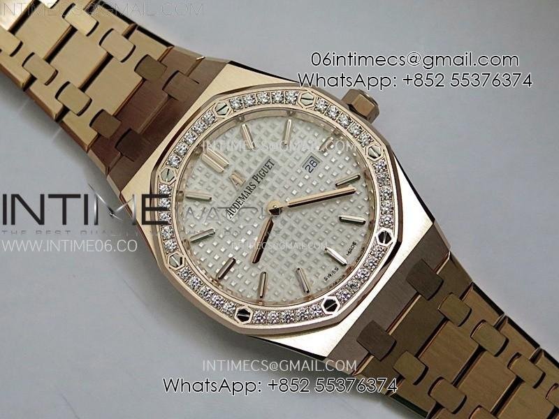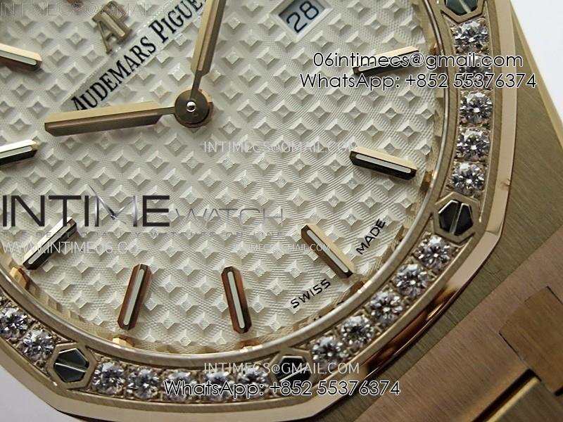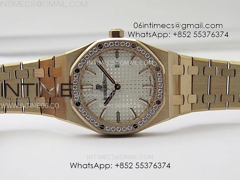 Lady Royal Oak 33mm 67651 Diamonds Bezel RG ZF 1:1 Best Edition White Textured Dial on RG Bracelet RONDA Quartz