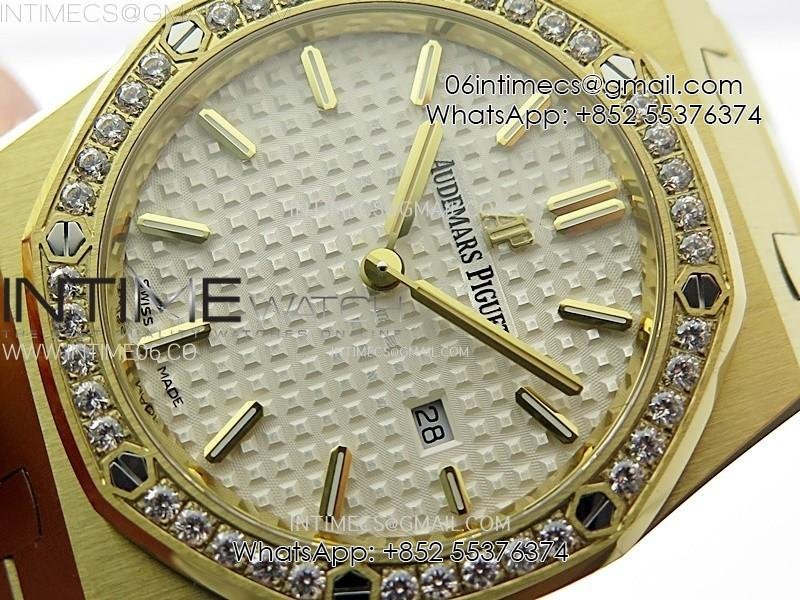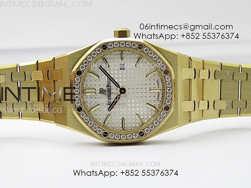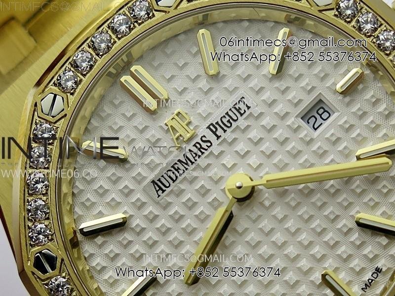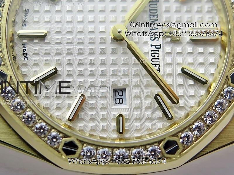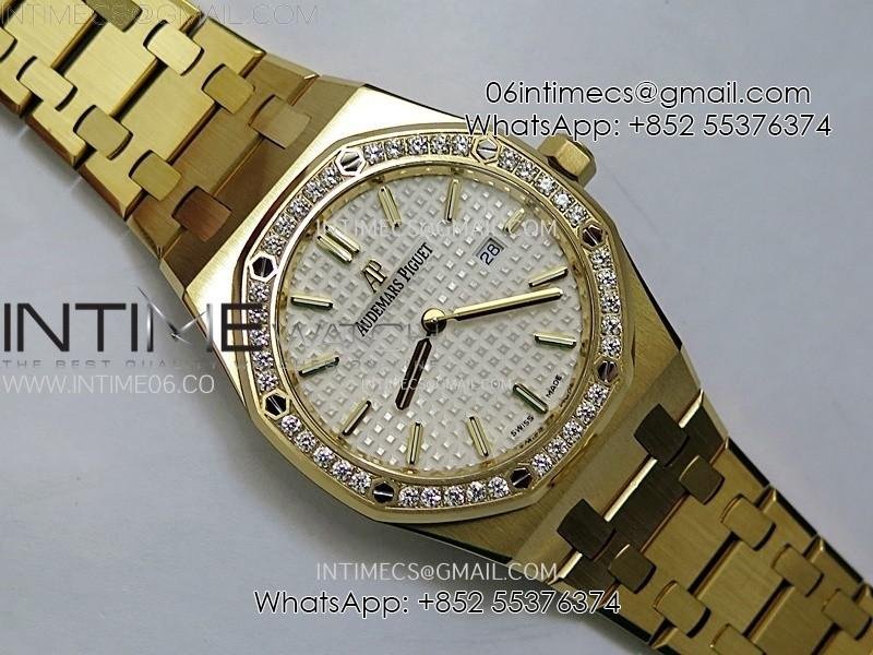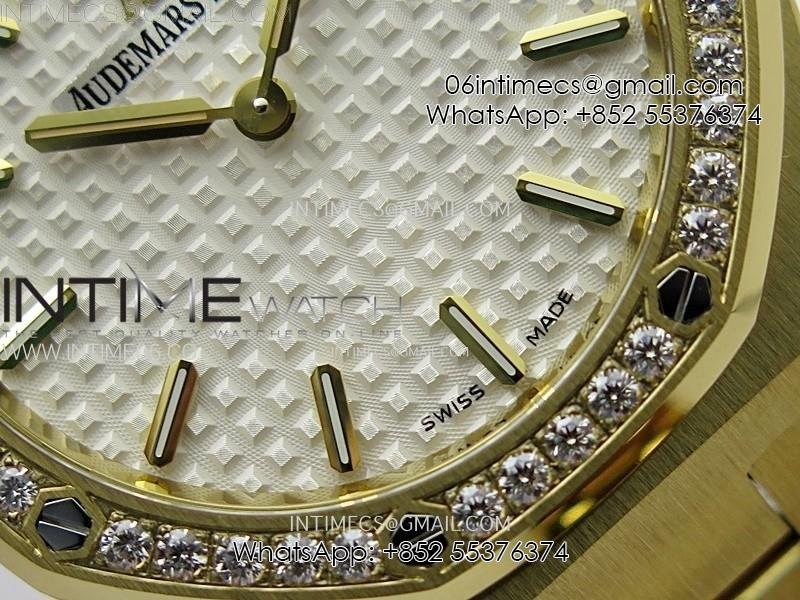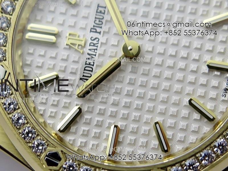 Lady Royal Oak 33mm 67651 Diamonds Bezel YG ZF 1:1 Best Edition White Textured Dial on YG Bracelet RONDA Quartz