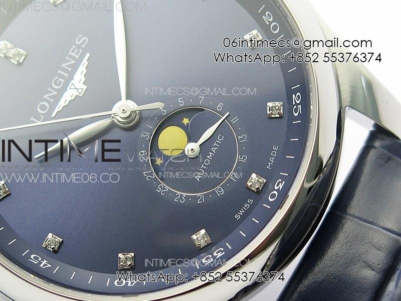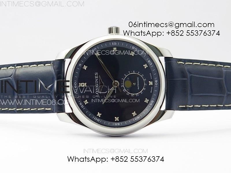 Master Moonphase SS APSF 1:1 Best Edition Blue Diamonds Dial on Blue Leather Strap AL899