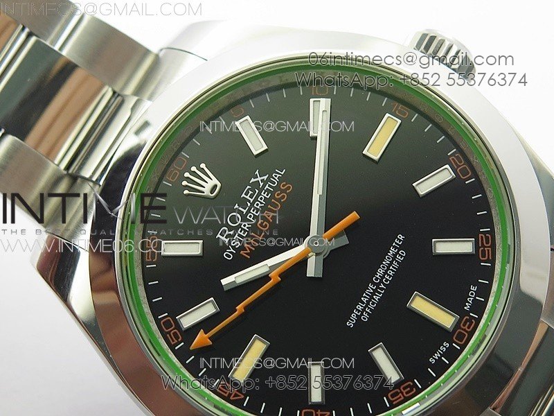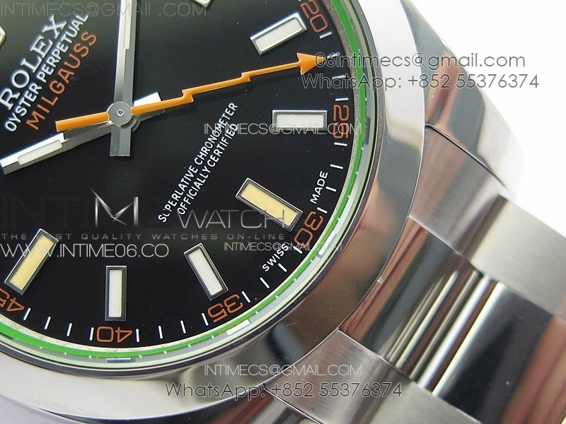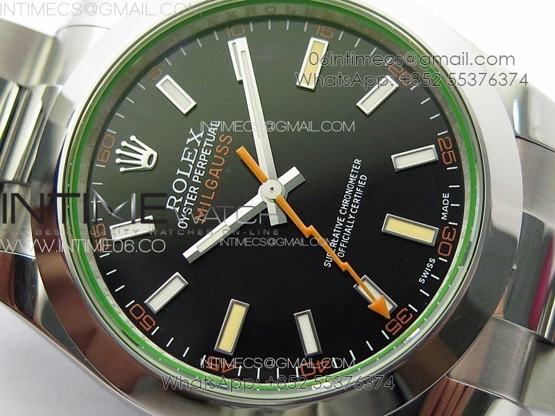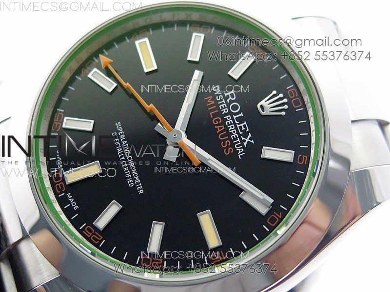 Milgauss 116400 GV Real Green Sapphire SS APSF 1:1 Best Edition Black Dial on SS Bracelet A2824