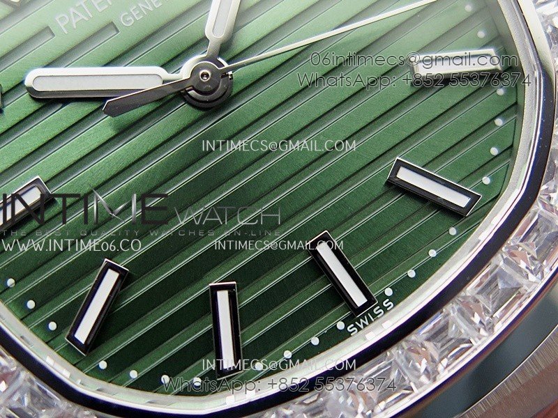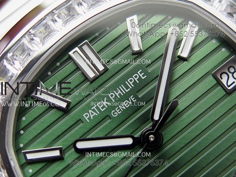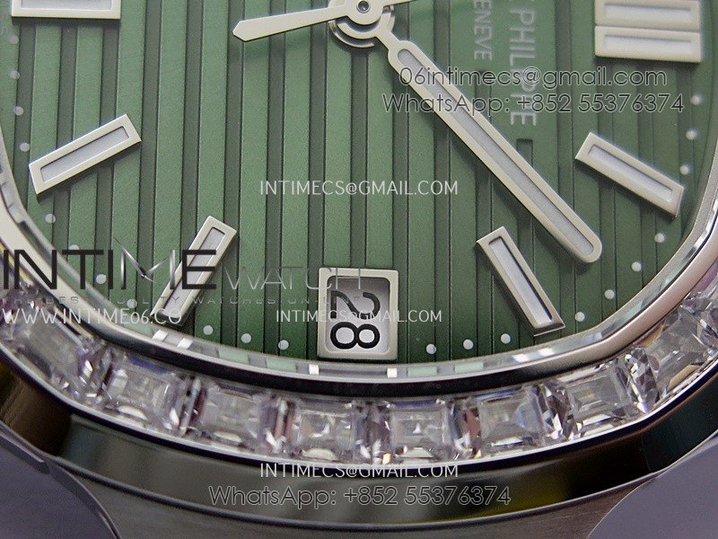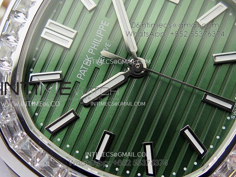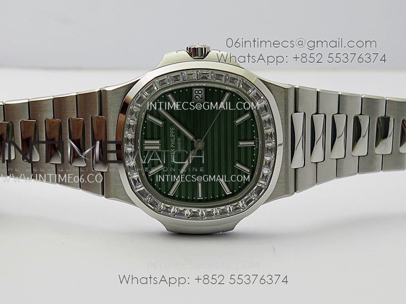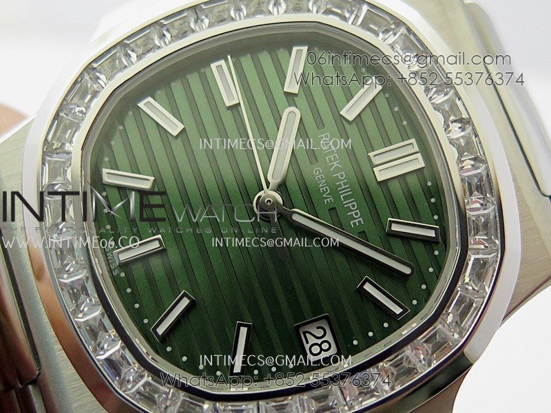 Nautilus 5711/1A 3KF 1:1 Best Edition Diamonds Bezel Green Textured Dial on SS Bracelet A324 Super Clone V2