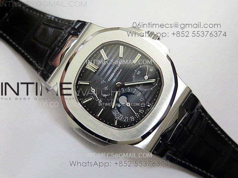 Nautilus 5712G SS PPF 1:1 Best Edition Blue Dial on Black Leather Strap A240 Super Clone V2