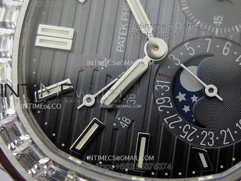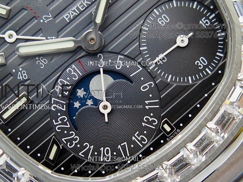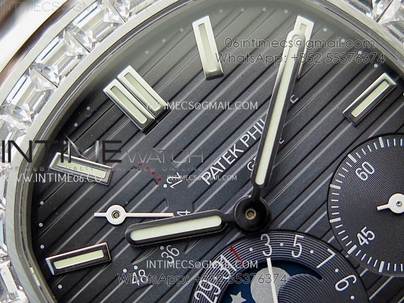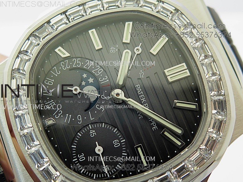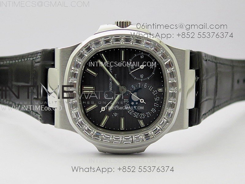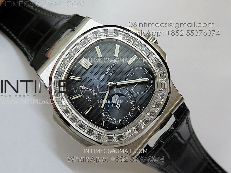 Nautilus 5722G SS/T Diamonds PPF 1:1 Best Edition Blue Dial on Black Leather Strap A240 Super Clone