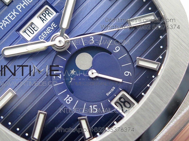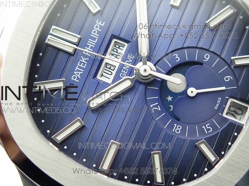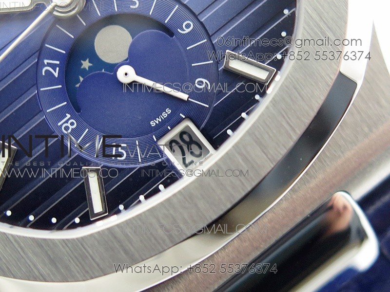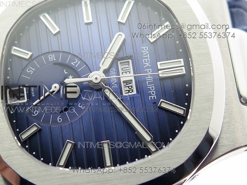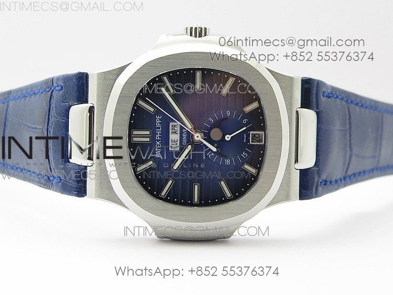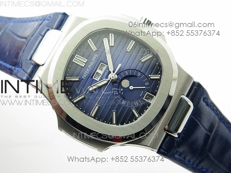 Nautilus 5726 Complicated SS GRF 1:1 Best Edition Blue Textured Dial on Blue Leather Strap A324 V3