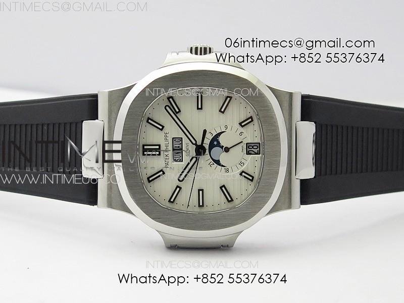 Nautilus 5726 Full Function SS PPF 1:1 Best Edition White Dial on Black Rubber Strap PPF324 (Free Tool)