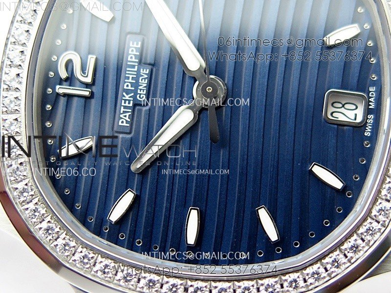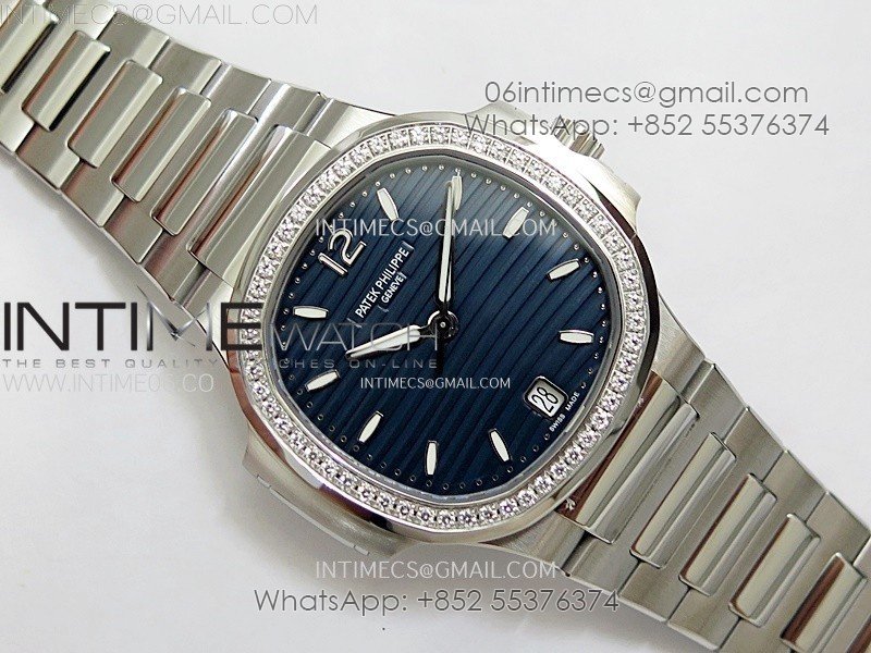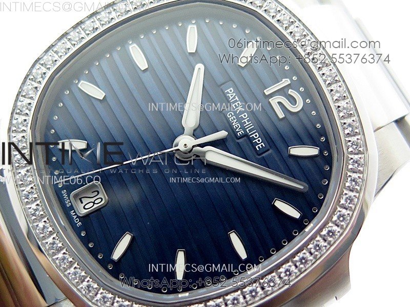 Nautilus 7118 New Version Ladies Diamonds Bezel PPF 1:1 Best Edition Blue Dial on SS Bracelet A324 Super Clone