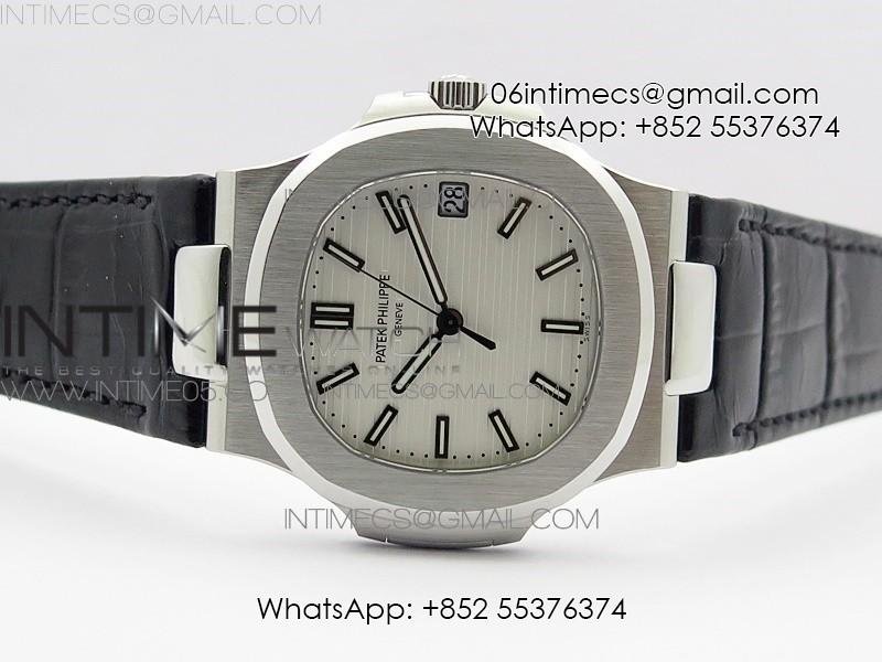 Nautilus Jumbo 5711 Super Replication PPF V4 1:1 Best Edition White Textured Dial on Black Leather Strap PPF324