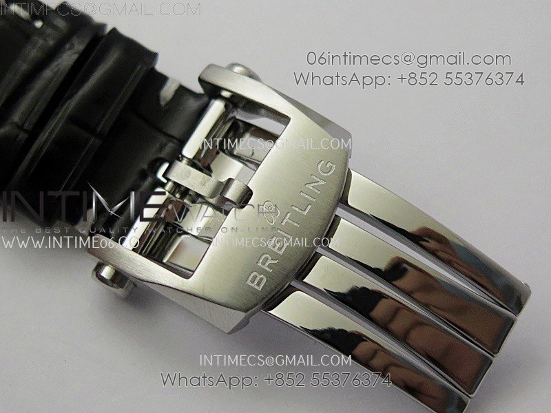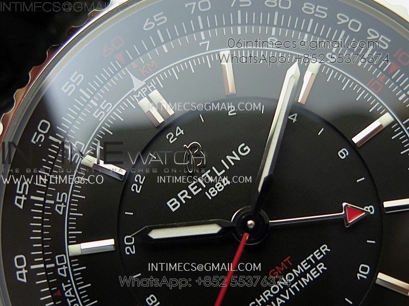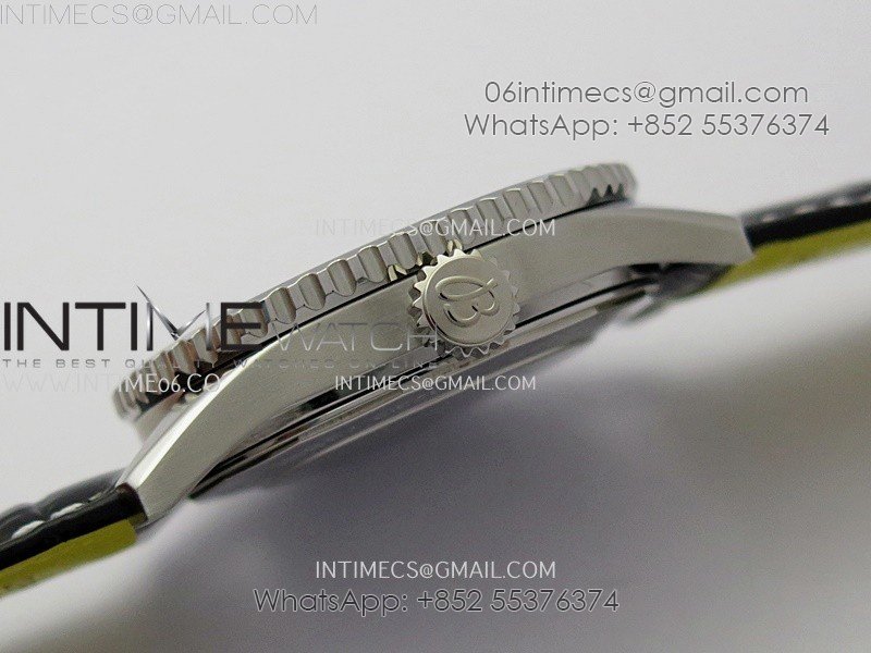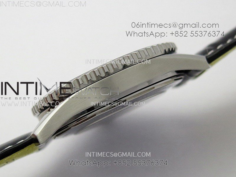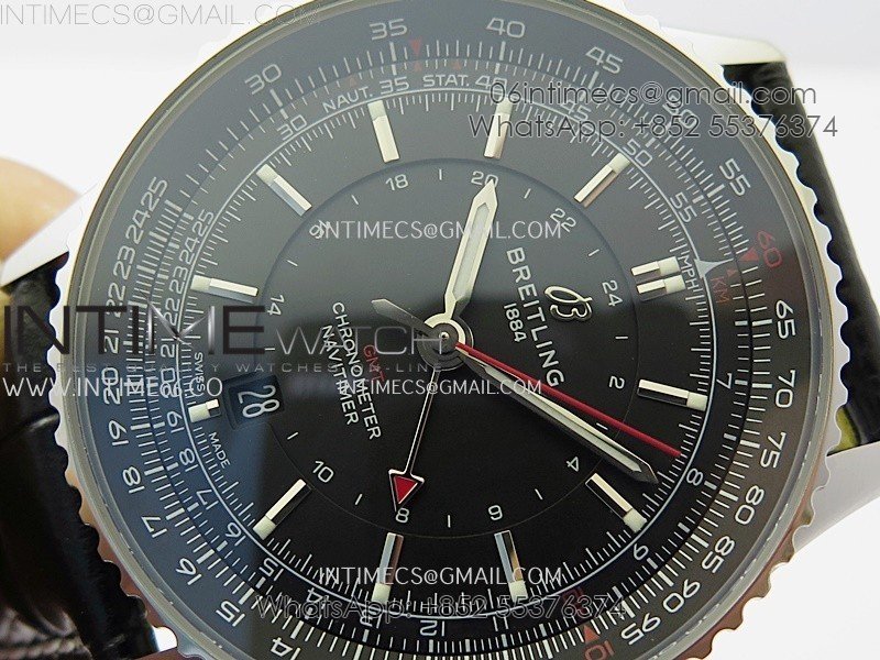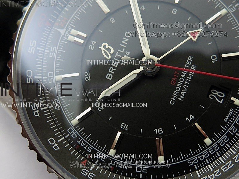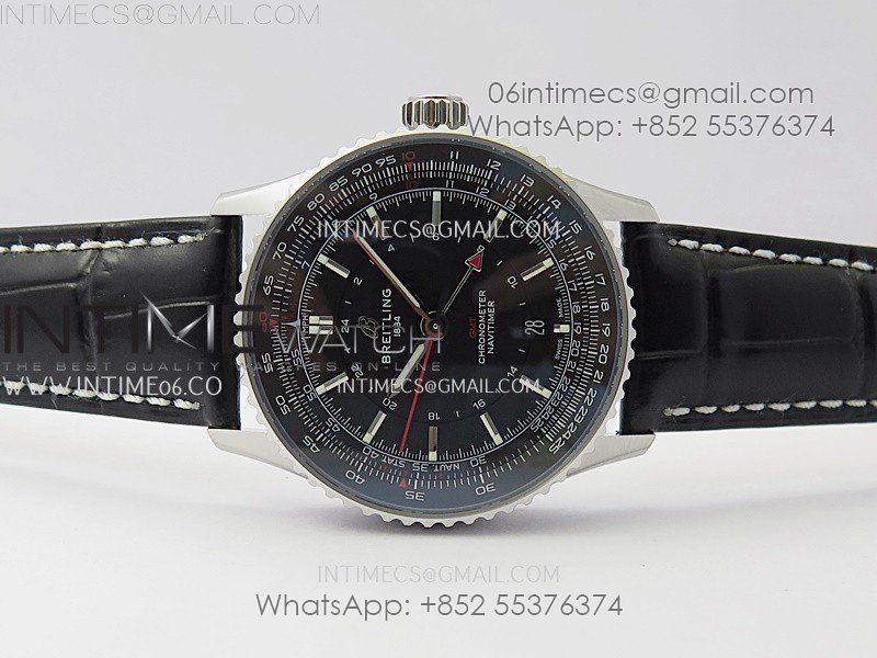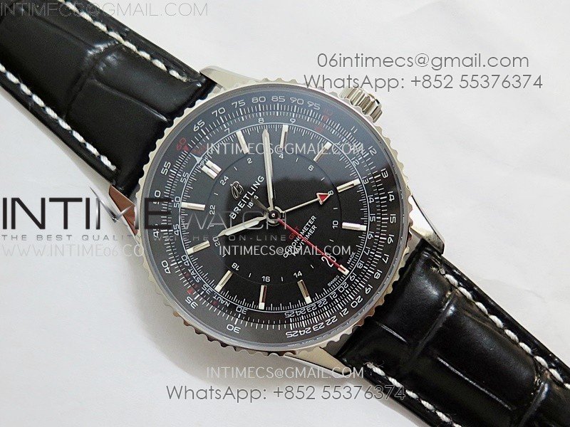 Navitimer 41mm GMT SS BLSF 1:1 Best Edition Black Dial on Black Leather Strap A2836