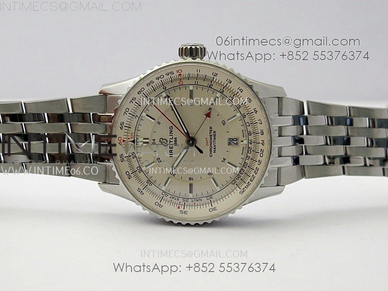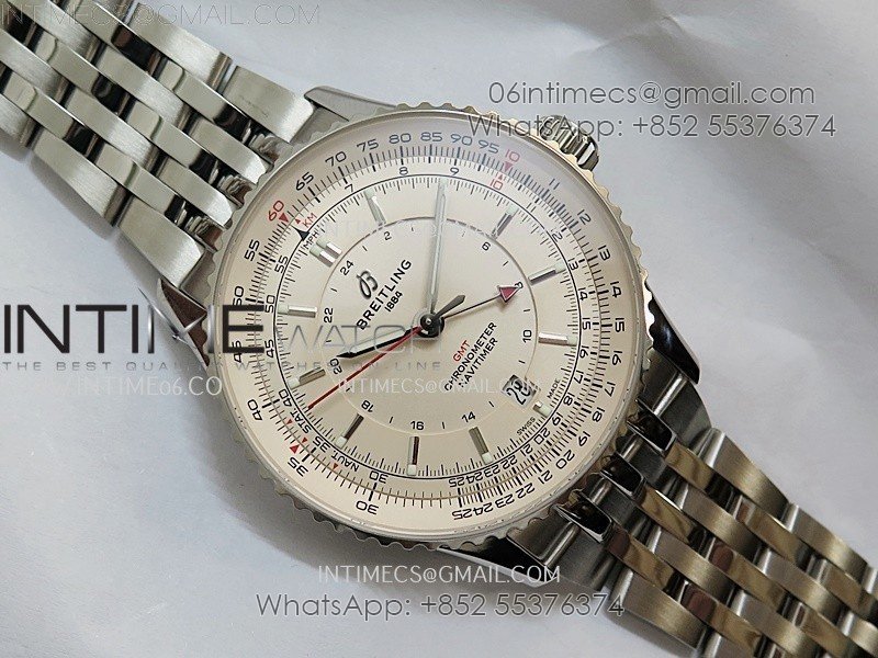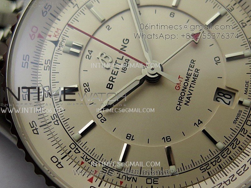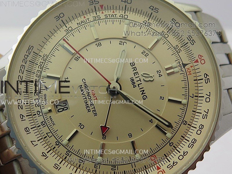 Navitimer 41mm GMT SS BLSF 1:1 Best Edition Champagne Gold Dial on SS Bracelet A2836