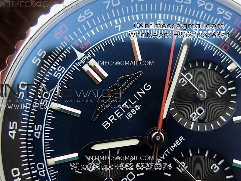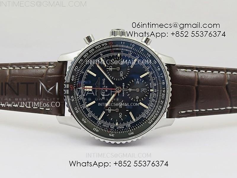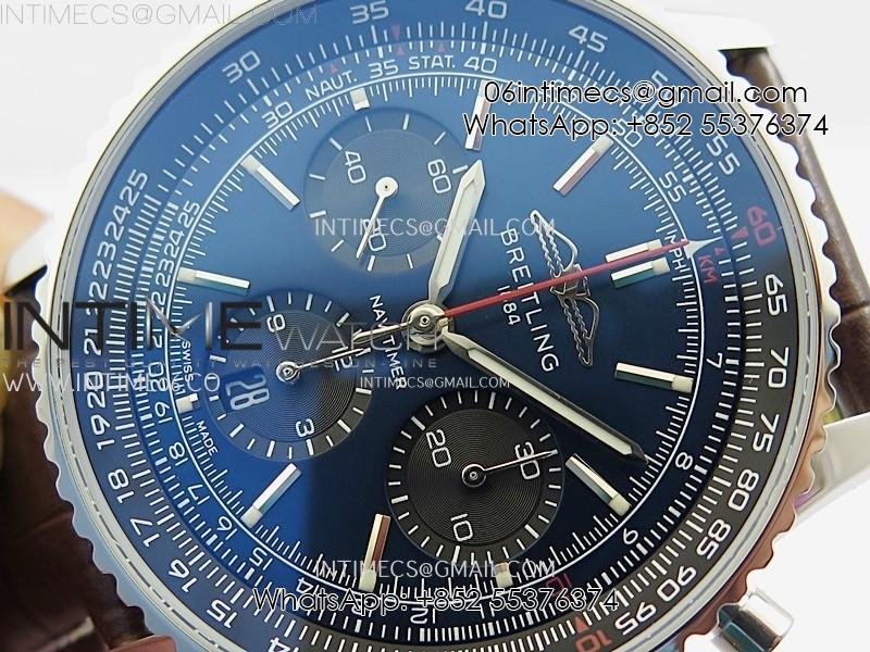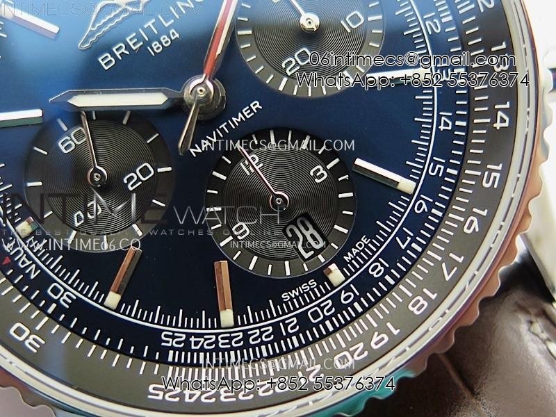 Navitimer B01 43mm SS B50 Best Edition Blue Dial Black Subdial On Brown Leather Strap A7750