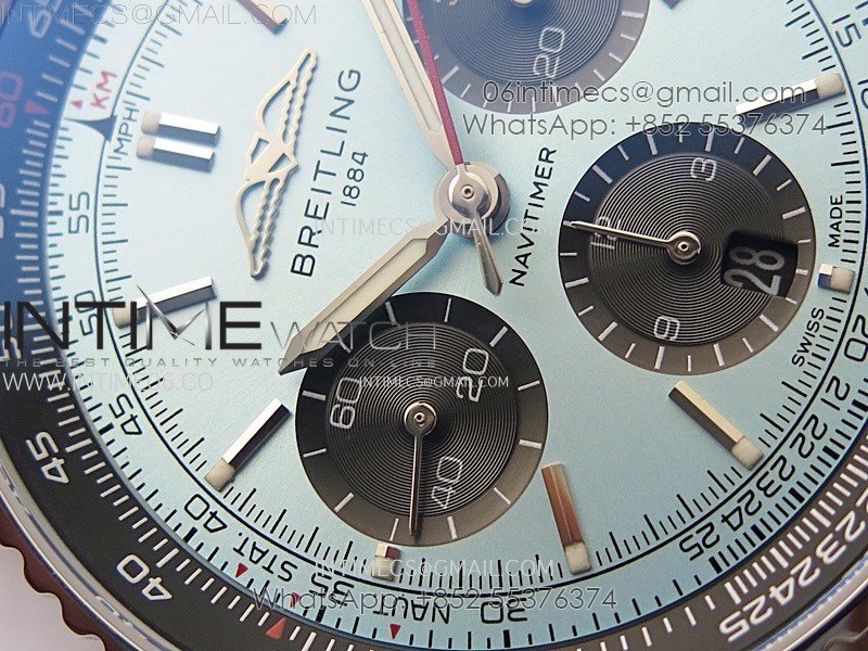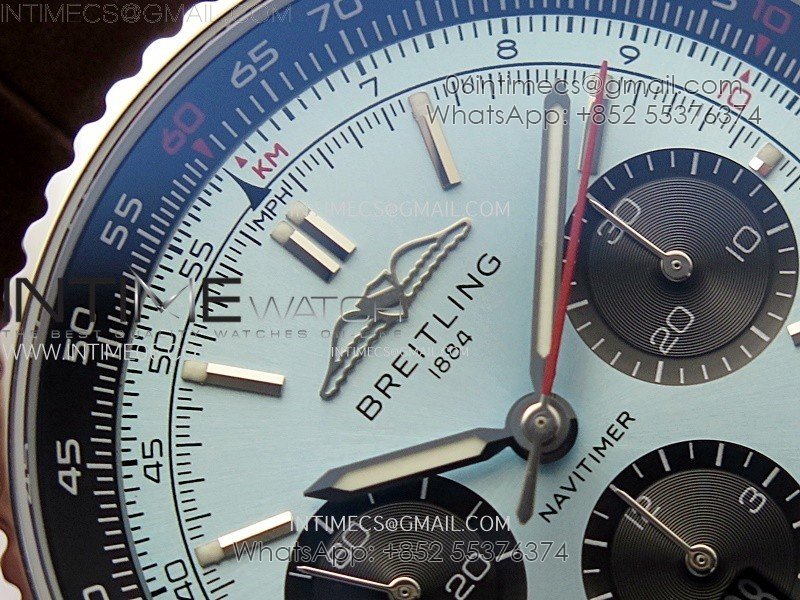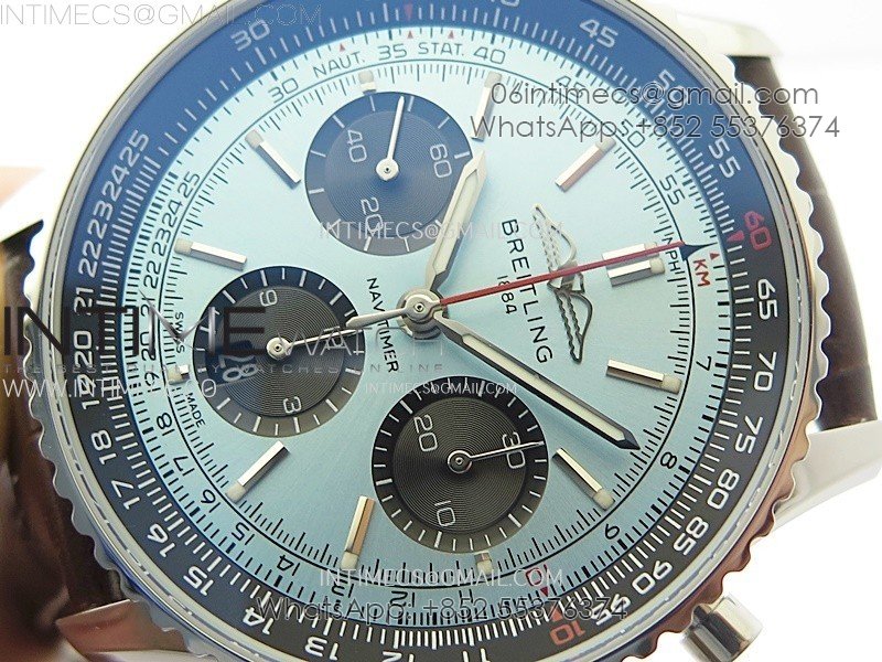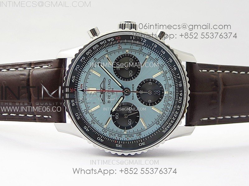 Navitimer B01 43mm SS B50 Best Edition Ice Blue Dial Black Subdial On Brown Leather Strap A7750