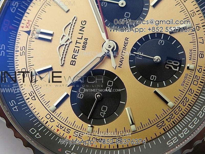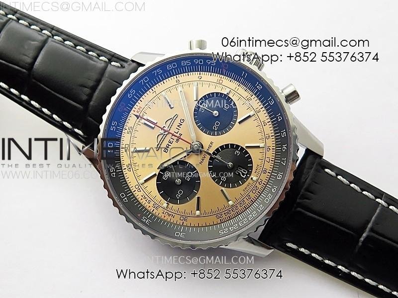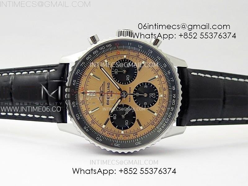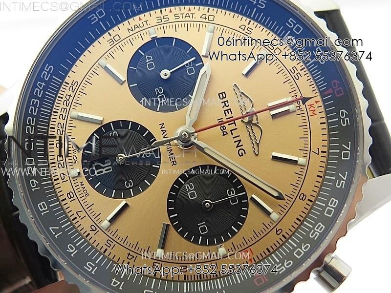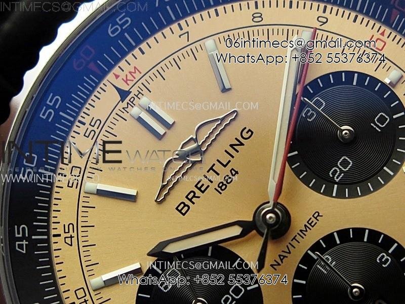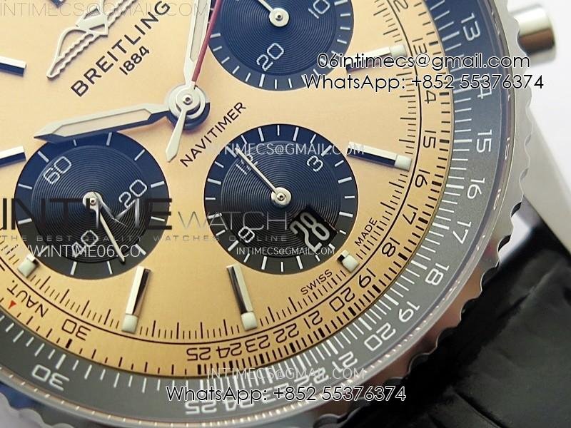 Navitimer B01 43mm SS BLSF 1:1 Best Edition RG Dial Black Subdial On Black Leather Strap A7750